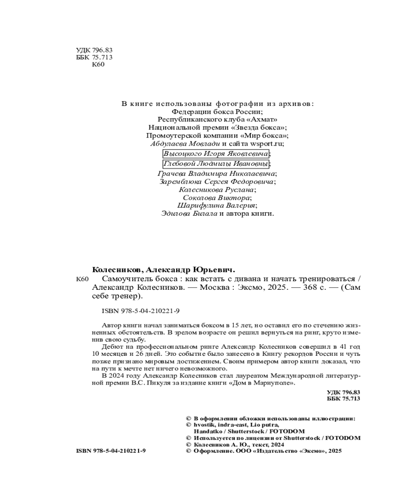 Самоучитель бокса. Как встать с дивана и начать тренироватьсяВ данный момент этот товар отсутствует в продаже. Возможно, у нас найдется аналогичный или похожий товар здесь. Серия: Сам себе тренер Книга, которую вы держите сейчас в руках, написана профессиональным боксёром, двукратным рекордсменом Книги рекордов России, который в возрасте 42 лет впервые вышел на профессиональный ринг. |