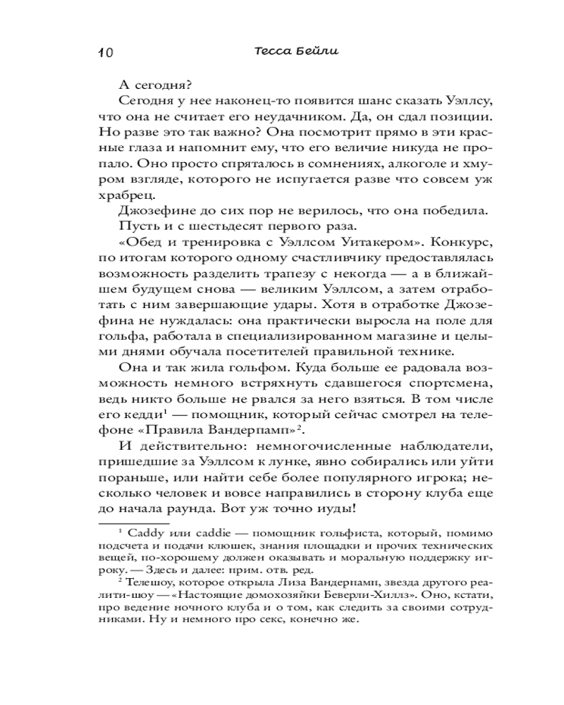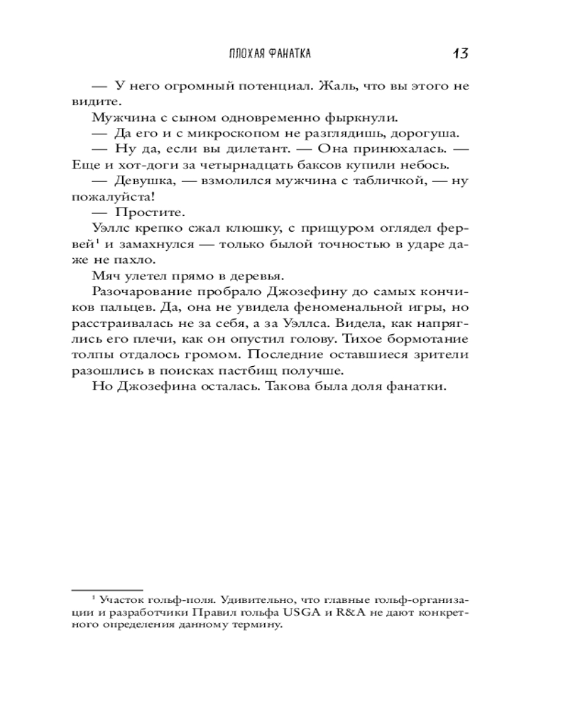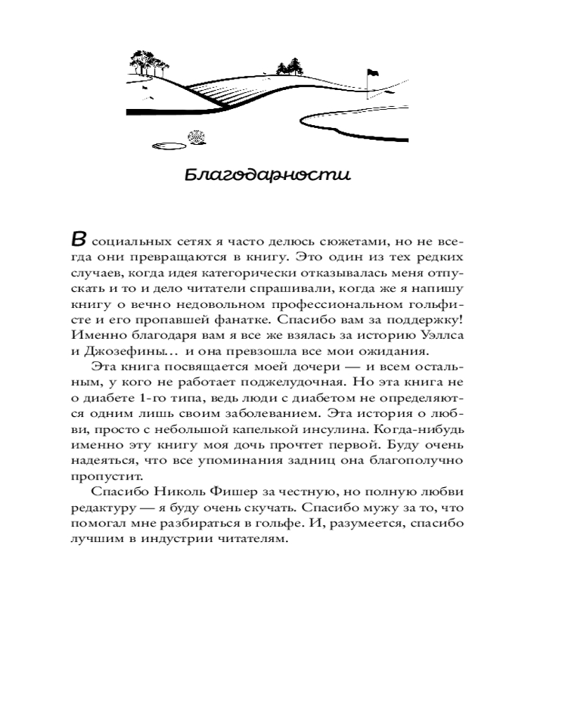 Он — когда-то великий гольфист, она — его самая преданная фанатка. Если они начнут работать вместе, сможет ли она привести чемпиона к новым победам? Уэллс Уиттакер когда-то был восходящей звездой гольфа, но в последнее время все, из чего состоит его «многообещающая» карьера, это жуткое похмелье, коллекция сломанных клюшек и единственный оставшийся болельщик. Вернее, болельщица. Как бы плохо он ни играл, рыжеволосая Джозефина всегда была рядом и верила в великолепного, сварливого гольфиста, даже когда он сам в себя не верил. Но теперь?..