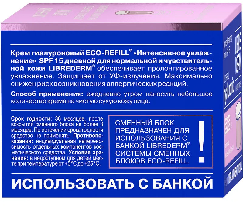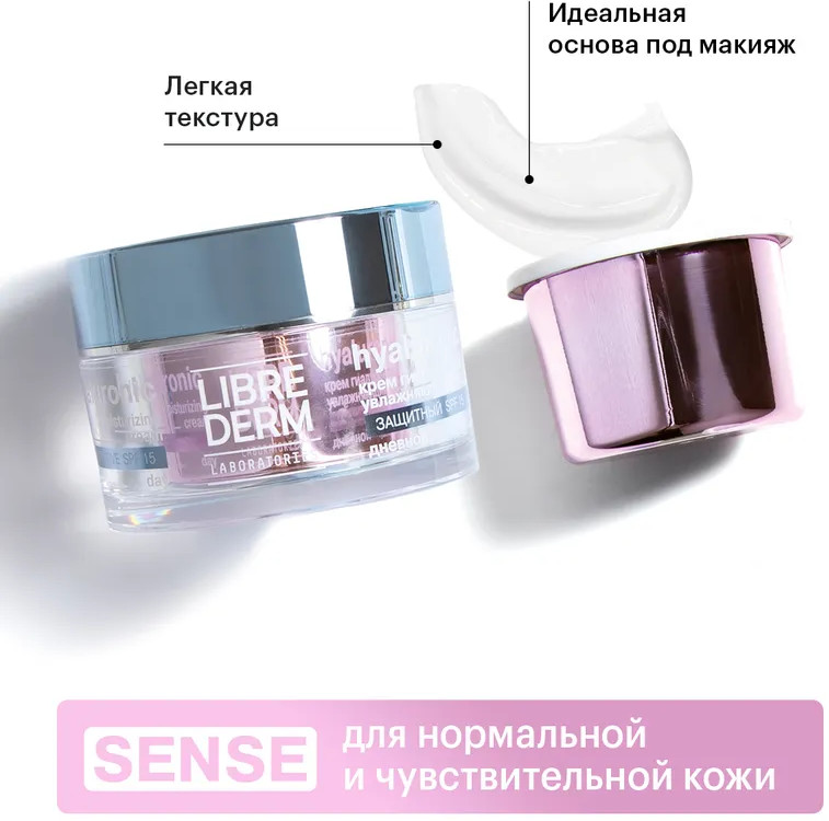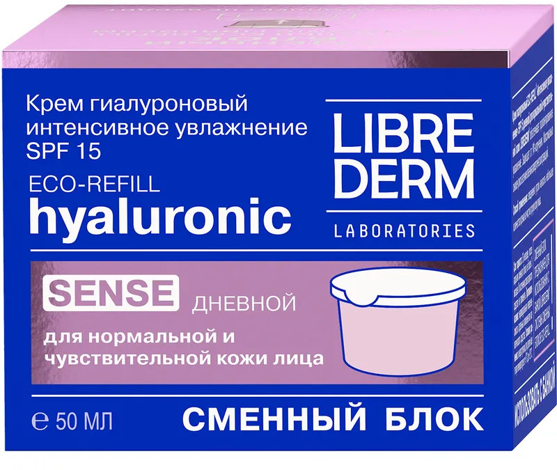 Librederm Сменный блок крема для лица гиалуронового дневного для нормальной и чувствительной кожи Sense «Интенсивное увлажнение» SPF15