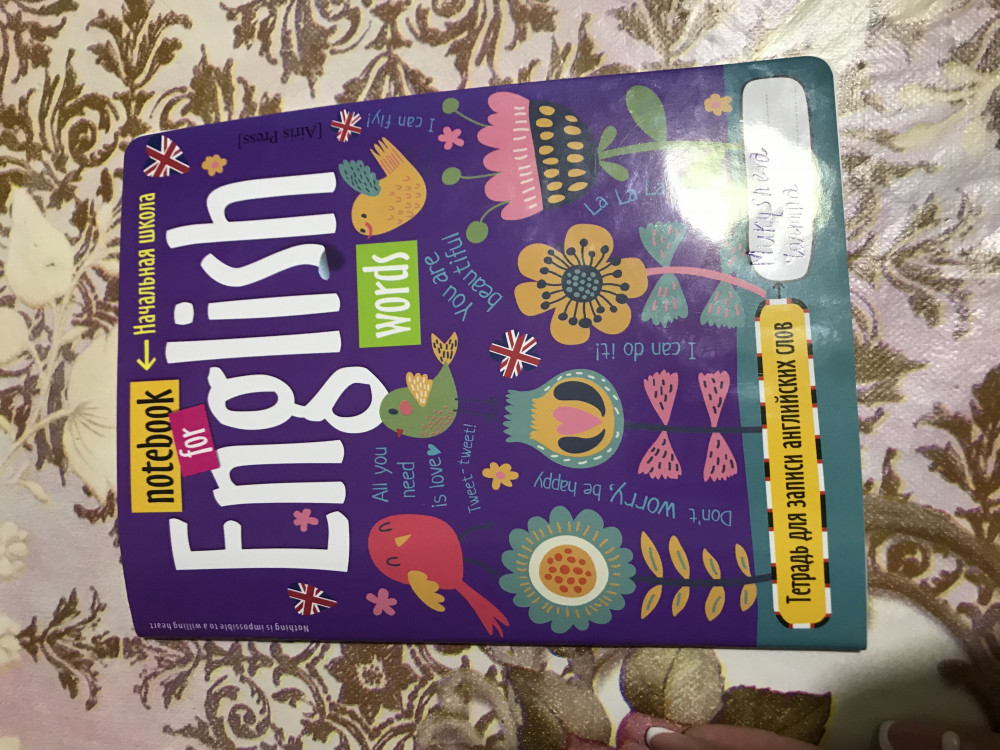 Полезная тетрадь для записей иностранных слов. Предусмотрено все. И начальные разговорные слова, и выражения, и транскрипция, и перевод слова. Заказала ещё!
