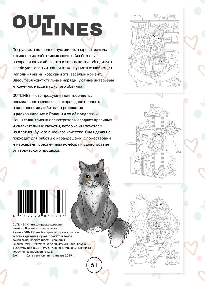 | Outlines Раскраска-скетчбук «Без кота и жизнь не та»