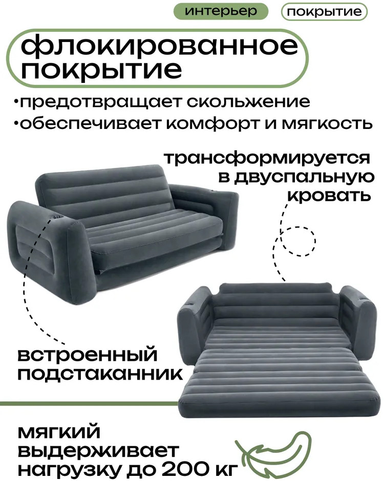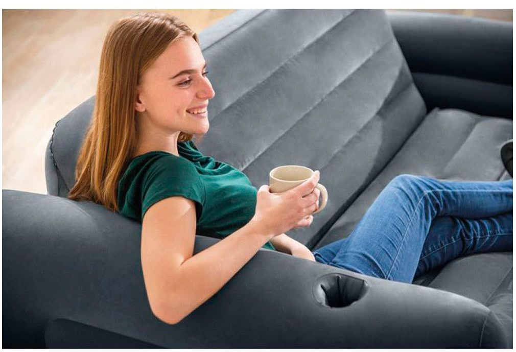 Intex Диван-трансформер надувной двуспальныйВ данный момент этот товар отсутствует в продаже. Возможно, у нас найдется аналогичный или похожий товар здесь. Надувной диван-кровать Intex 66552 может разместить двух человек. Прочная структура внутренних перегородок обеспечивает достаточную жесткость всей конструкции для комфортного отдыха. Материал мягкий и приятный на ощупь, напоминает велюр, легко чистится влажной салфеткой. Встроенные углубления для стаканов в подлокотниках можно использовать для размещения напитков или пульта от телевизора. При необходимости диван легко превращается в двуспальный матрас, для этого достаточно потянуть за спинку вперед. Диван надувается за считанные минуты с помощью любого насоса фирмы Intex. Насос в комплект не входит и приобретается отдельно. Диван легкий и удобный, его легко переносить и очень удобно хранить. |