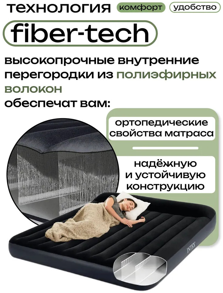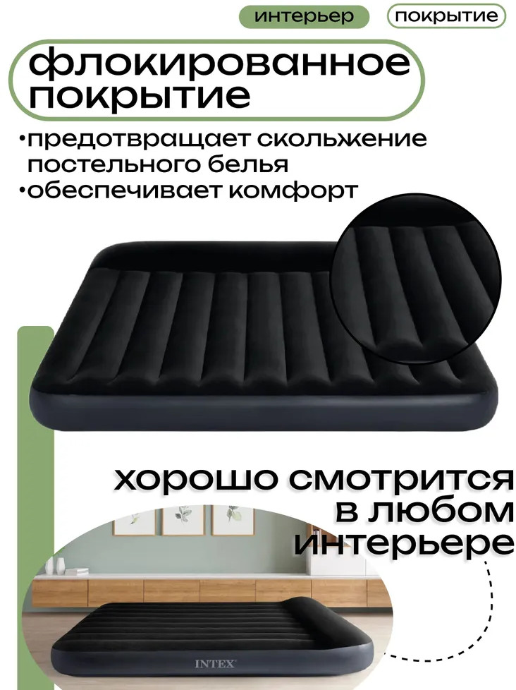 Intex Матрас надувной с подголовником «Pillow Rest Classic Airbed»В данный момент этот товар отсутствует в продаже. Возможно, у нас найдется аналогичный или похожий товар здесь. Надувной матрас Intex 64144 серии «Pillow Rest Classic Airbed» имеет ворсистое, очень приятное на ощупь верхнее покрытие. Стенки и дно из гладкого винила для удобства ухода. В матрасе использована конструкция Dura-Beam с Fiber-Tech. Уникальность технологии заклюяается в том, что внутренние перегородки состоят из тысяч высокопрочных полиэфирных волокон, которые не растягиваются со временем, что обеспечивает невероятную долговечность и комфорт. Такая конструкция позволяет свести к минимуму проминание матраса и надолго сохранить его форму. Как бы сильно матрас не был надут, поверхность матраса всегда остается ровной, что делает отдых комфортным и приятным. Двуспальный матрас «Pillow Rest Classic Airbed» — удобен, долговечен и красив, в сложенном виде компактен, это прекрасный выбор для дома, дачи и отдыха на природе. Ворсистая поверхность легко чистится и моется, не пропускает влагу, предотвращает сползание постельного белья. В комплект входит специальная сумка, очень удобная для переноски кровати. |