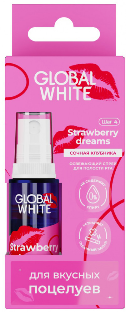 Global White Спрей для полости рта освежающий со вкусом сочной клубники «Strawberry dreams»