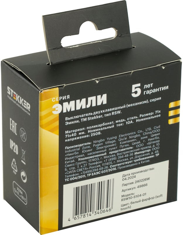 Stekker Выключатель двухклавишный RSW10-5104-01