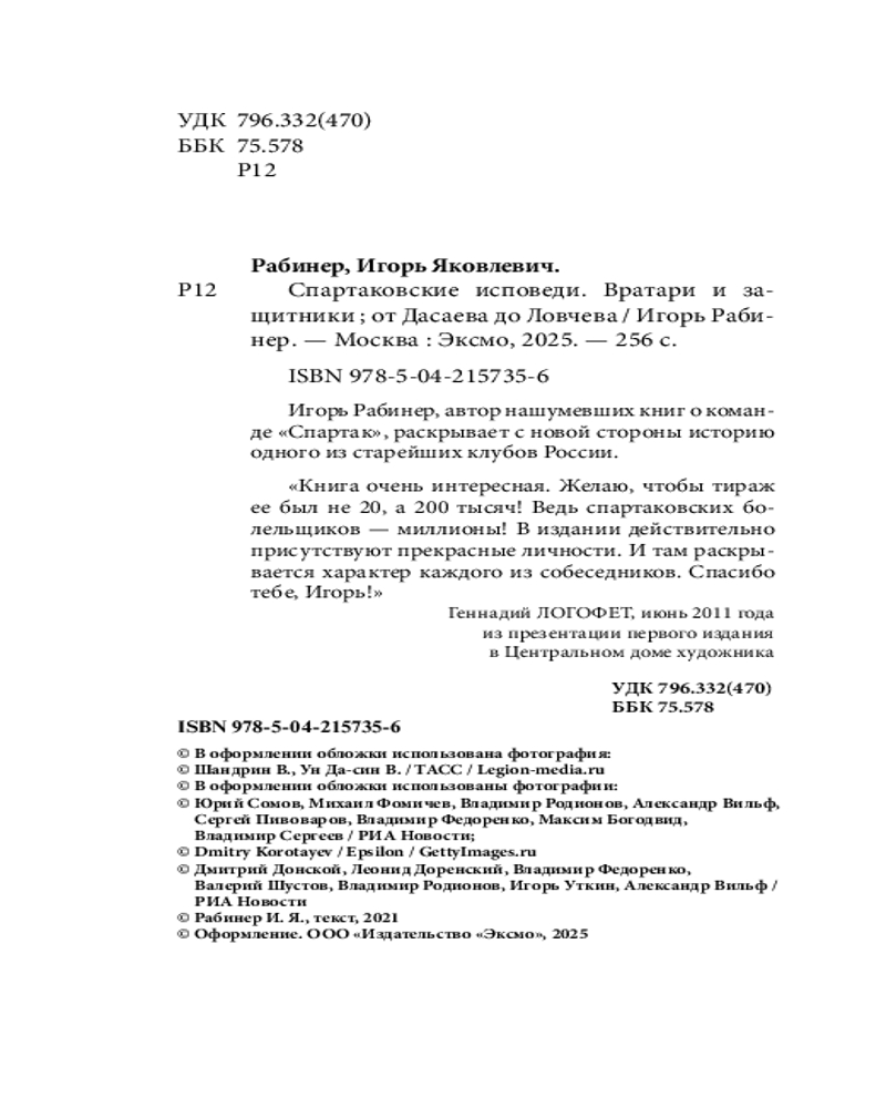 💳 Оплатить за товар можно при получении 🇰🇿 Есть бесплатная доставка по Казахстану от 1 дня 🎁 Копите бонусы с каждой покупки Серия: Рабинер Игорь. Российские легенды спорта «Книга очень интересная. Желаю, чтобы тираж ее был не 20, а 200 тысяч! Ведь спартаковских болельщиков — миллионы! В издании действительно присутствуют прекрасные личности. И там раскрывается характер каждого из собеседников. Спасибо тебе, Игорь!» — Геннадий ЛОГОФЕТ, июнь 2011 года. Из презентации первого издания в Центральном доме художника. |