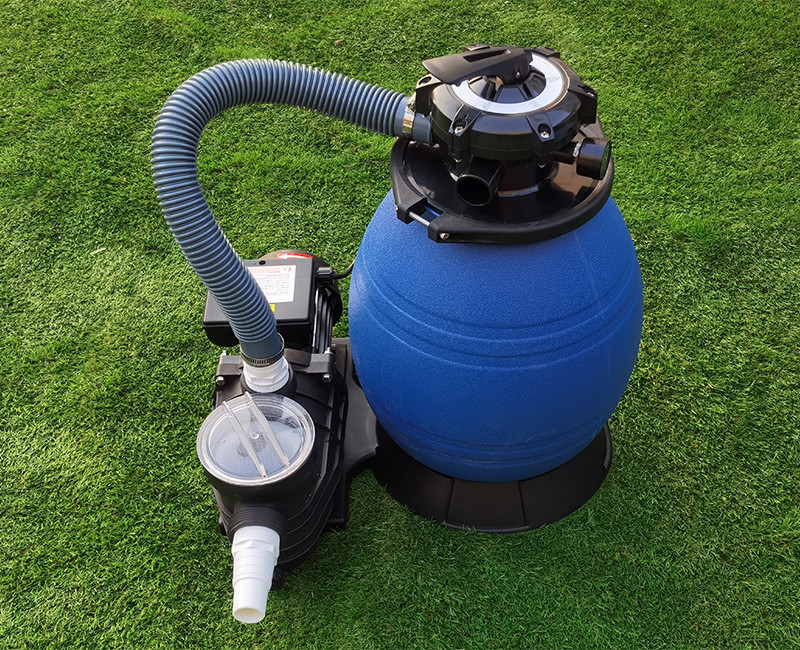 Фильтровальная установка Poolstar P2127 — предназначена для очистки воды в бассейнах от механических взвесей, состоит из бочки для засыпки песка с 6х позиционным вентилем и электронасоса с префильтром, установленных на общей платформе. В качестве фильтрующего элемента применяется кварцевый песок фракцией (зернистостью) в пределах 0.4-1мм.