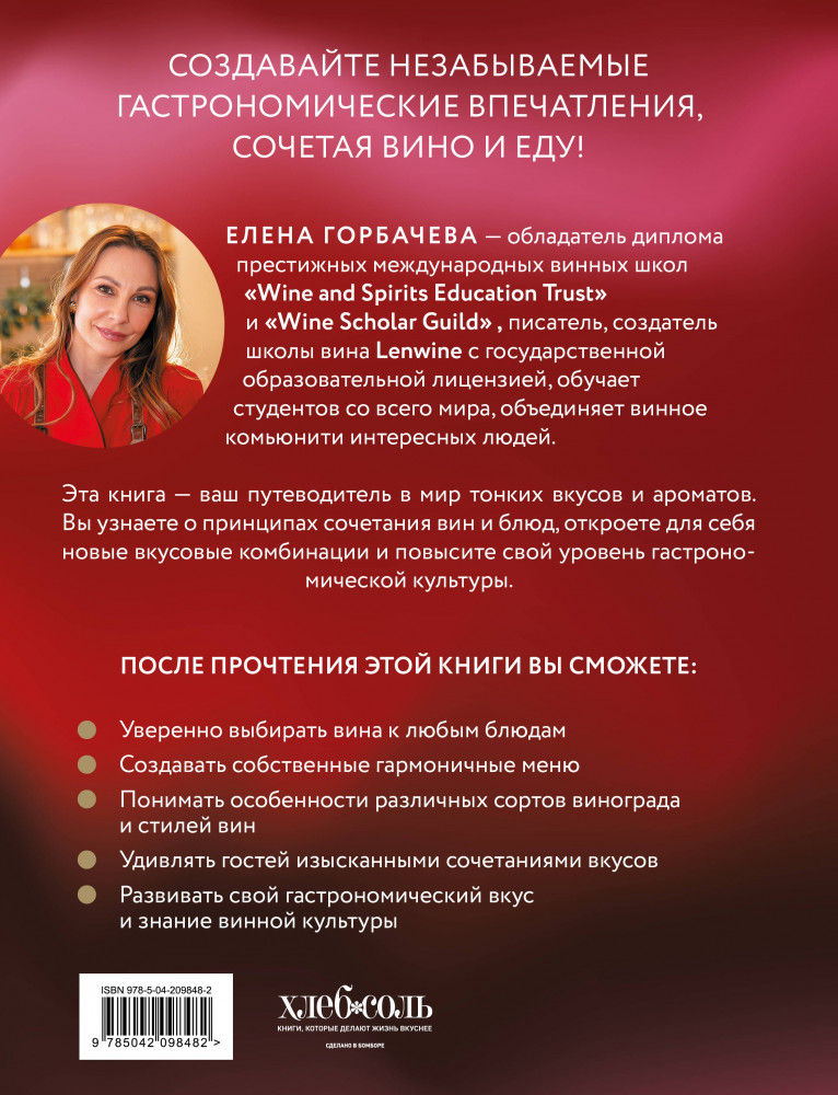 💳 Оплатить за товар можно при получении 🇰🇿 Есть бесплатная доставка по Казахстану от 1 дня 🎁 Копите бонусы с каждой покупки Серия: Сам себе сомелье. Винная школа Елены Горбачевой Создавайте незабываемые гастрономические впечатления, сочетая вино и еду! Эта книга — ваш путеводитель в мир тонких вкусов и ароматов. Вы узнаете о принципах сочетания вин и блюд, откроете для себя новые вкусовые комбинации и повысите свой уровень гастрономической культуры. |