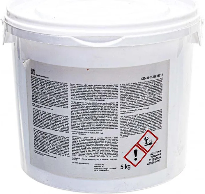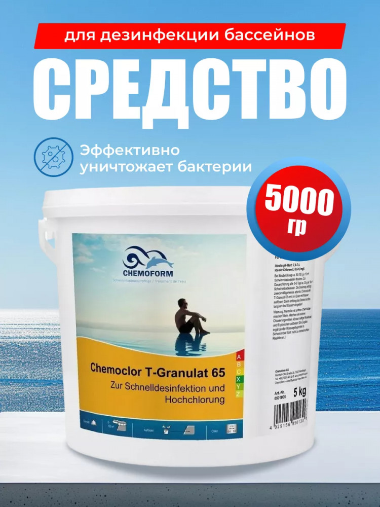 Chemoform Средство для дезинфекции бассейнов «Кемохлор Т-65»В данный момент этот товар отсутствует в продаже. Возможно, у нас найдется аналогичный или похожий товар здесь. Кемохлор Т-65 гранулированный — это средство содержит дихлоризоцианурат-дигидрата натрия, содержит 55% активного хлора. Хлористый раствор идеальный дезинфектор, не влияет на повышение РН. Используется при разной жесткости в воде. Гранулы для текущей и ударной дезинфекции воды. |