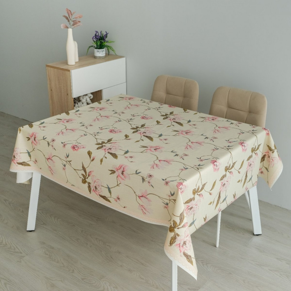 Клеенка изготовлена из текстильного материала, покрытого, с одной стороны, слоем плотного поливинилхлорида, декорирована напечатанным рисунком, с необработанными краями. Лицевой является сторона, покрытая слоем плотного ПВХ, на которую нанесен печатный рисунок. Клеенка имеет водонепроницаемую, непористую структуру.