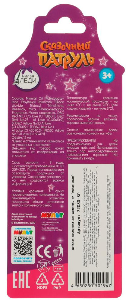 Милая Леди Блеск для губ «Сказочный патруль», тон ОранжевыйВ данный момент этот товар отсутствует в продаже. Возможно, у нас найдется аналогичный или похожий товар здесь. Серия: Сказочный патруль Косметика для девочек — блеск для губ «Сказочный патруль» ТМ «Милая леди» непременно понравится маленькой моднице! Девочки в любом возрасте хотят быть красивыми. Специально для юных модниц был разработан этот блеск, который прекрасно смотрится на губах. Маленькая принцесса обязательно оценит красивый цвет, волшебный блеск и красочную упаковку с изображением любимых героинь. Развивайте чувство стиля и вкуса, учите девочку создавать свой неповторимый образ вместе с косметикой ТМ «Милая леди». |