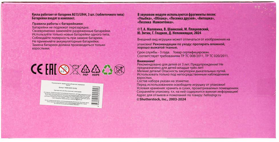 💳 Оплатить за товар можно при получении 🇰🇿 Есть бесплатная доставка по Казахстану от 1 дня 🎁 Копите бонусы с каждой покупки Озвученный пупс «Анечка» ТМ «Карапуз» станет прекрасным подарком для девочки. Этот милый пупс обязательно понравится вашей малышке. Анечка одета в яркий костюмчик с элементами из блестящей ткани, на голове — шапочка в тон. Одежда легко надевается и снимается. С такой куколкой девочка может играть в самые разные игры, гулять с ней, петь песни, кормить, переодевать, рассказывать сказки и укладывать спать. Игра с пупсом ТМ «Карапуз» учит ребёнка заботиться об окружающих, быть ответственным и внимательным, а также развивает: воображение, память, внимание, звуковое восприятие и музыкальный слух и социально-коммуникативные навыки. |