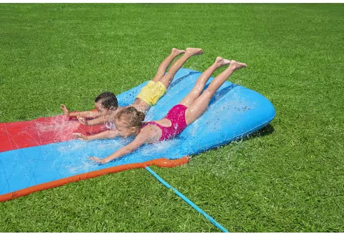Bestway Дорожка водная двухполоснаяВ данный момент этот товар отсутствует в продаже. Возможно, у нас найдется аналогичный или похожий товар здесь. Водная дорожка с двумя полосами предназначена для водных активных игр на свежем воздухе. Установите ее на свободном месте в саду под небольшим уклоном, пустите воду из садового шланга. Дети могут разбегаться и скатываться по скользкой поверхности. Почти пять метров безудержного веселья на водной дорожке, на финише небольшое углубление, чтобы не выезжать на землю. Двойная дорожка для скольжения понравится и малышам, и детям постарше. |