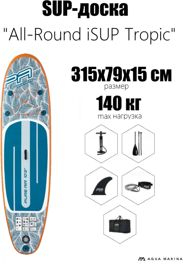 SUP-доска Aqua Marina All-Round iSUP Tropic новинка 2025 года отличается высокой прочностью, надежностью и маневренностью. Ей легко управлять, при этом можно использовать дополнительные весла, например, из алюминия. Если вы только начинаете знакомство с миром серфинга, то эта доска станет отличным приобретением. Она прослужит вам долгие годы; краска не стирается со временем. Также у доски противоскользящее покрытие, что отмечают многие профессиональные спортсмены.