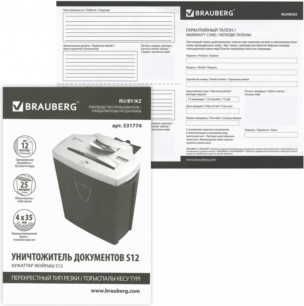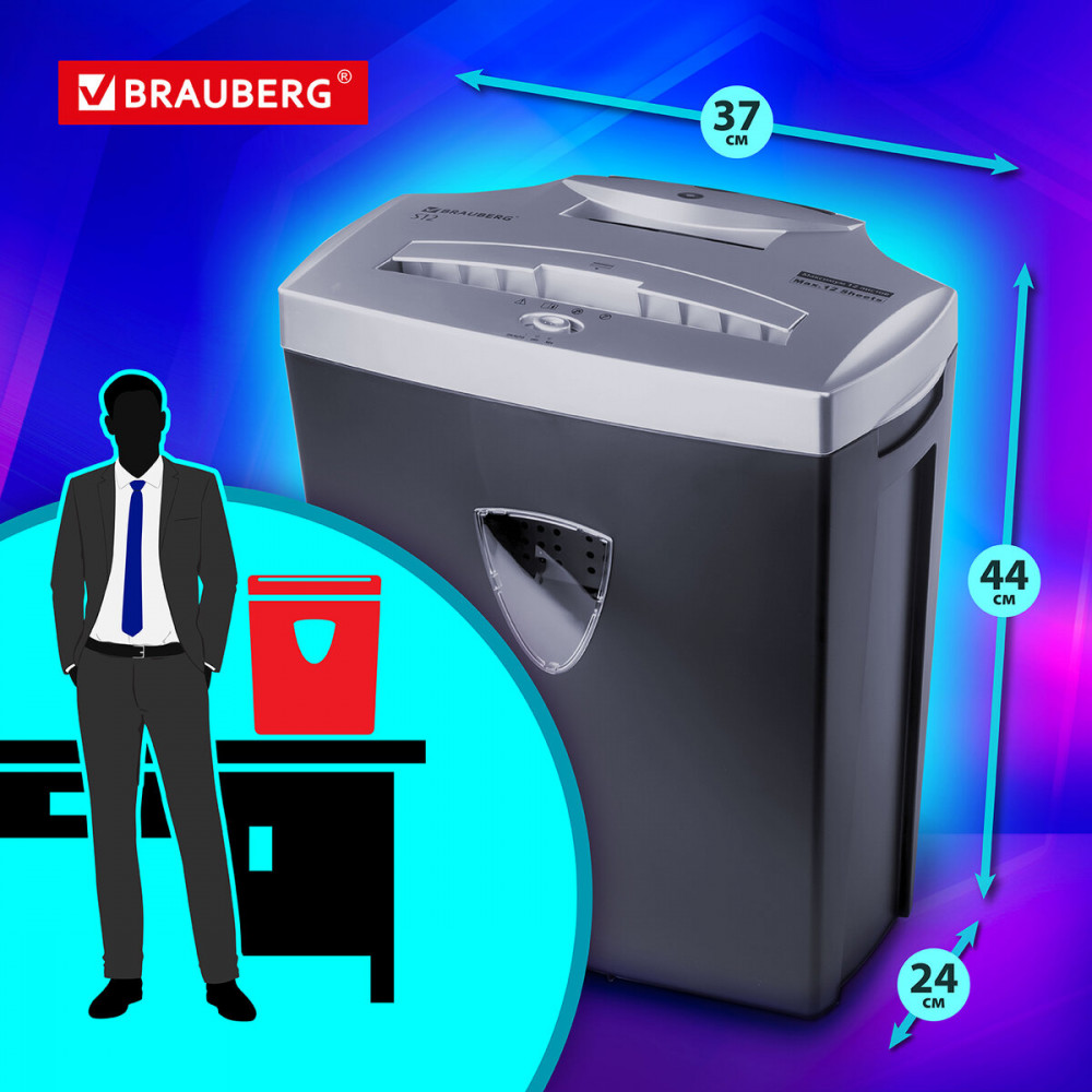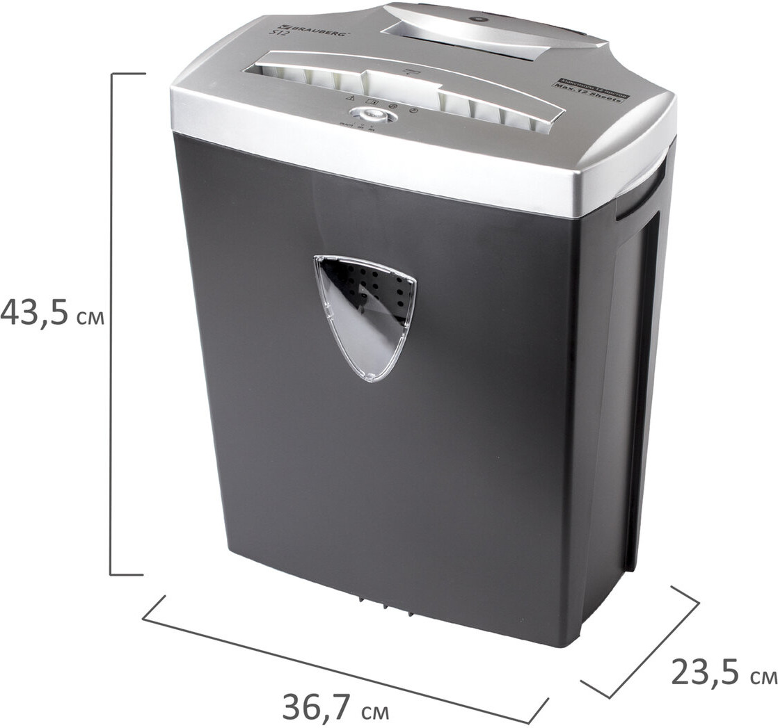 В данный момент этот товар отсутствует в продаже. Возможно, у нас найдется аналогичный или похожий товар здесь. Уничтожитель документов (шредер) Brauberg S12 предназначен для уничтожения документов, компакт-дисков и пластиковых карт (банковских, дисконтных и прочих), потерявших актуальность. Отлично подходит для интенсивного персонального использования или коллективного использования в малом офисе. Резка на фрагменты размером 4×35 мм обеспечивает P-4 уровень секретности (DIN 66399). Рекомендуемое количество пользователей — 3-5 человек. За один раз уничтожает 12 листов формата А4. Объем корзины составляет 25 л.