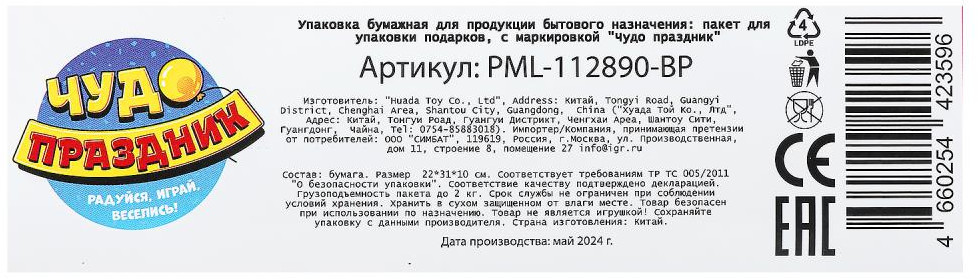 Чудо праздник Пакет подарочный матовый-35% +7