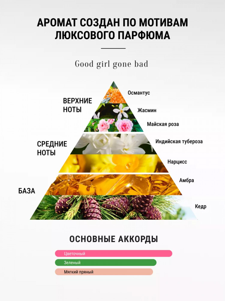 Аромат разочаровал. Еле уловимый, пахнет не так как заявлено. Цена завышена за такой объём. За такую сумму можно было бы купить что-то поинтересней.