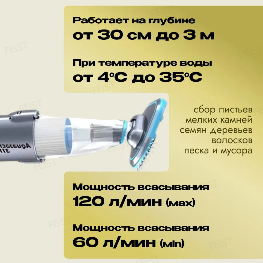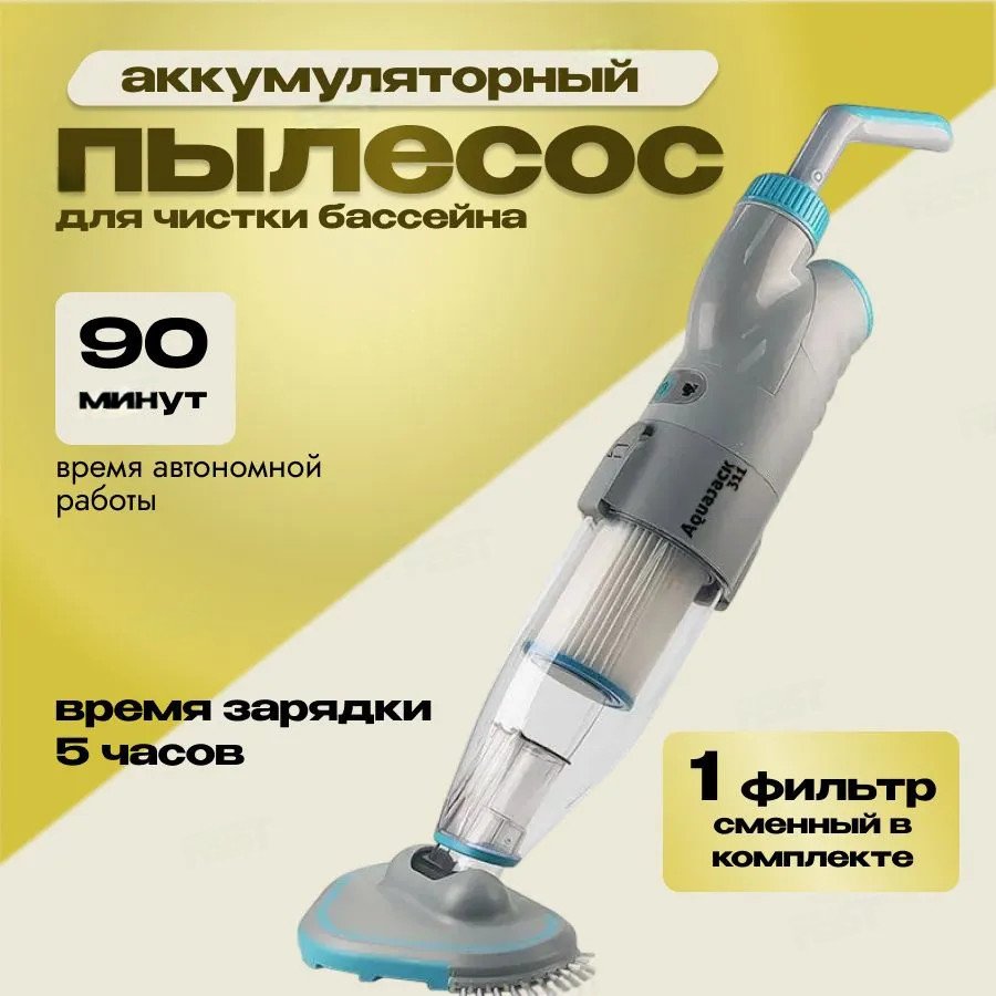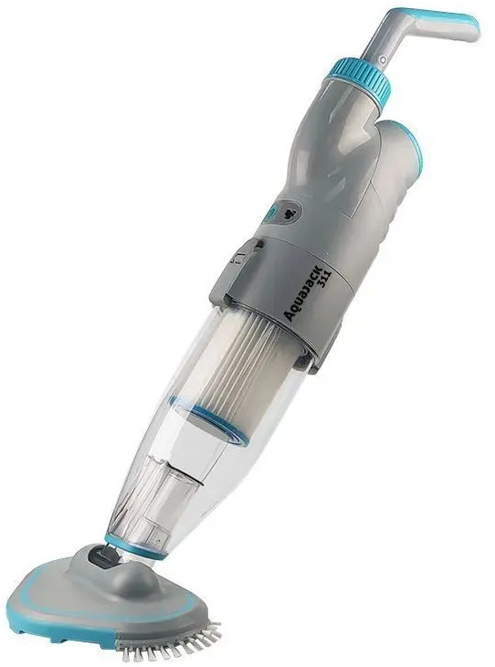 Ручной пылесос AquaJack 311 рассчитан на обслуживание средних и больших стационарных, каркасных, сборных, надувных, бассейнов и СПА от листьев, песка, камней, семян, донного мусора. Работает от встроенного заряжаемого литиевого аккумулятора, на глубине до 3 метров, совместим со стандартными телескопическими штангами, оснащен сменным картриджем тонкой очистки воды. Полностью автономен, прост в эксплуатации.