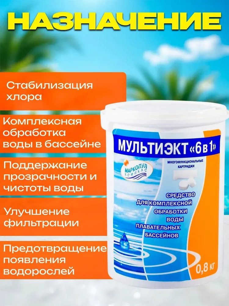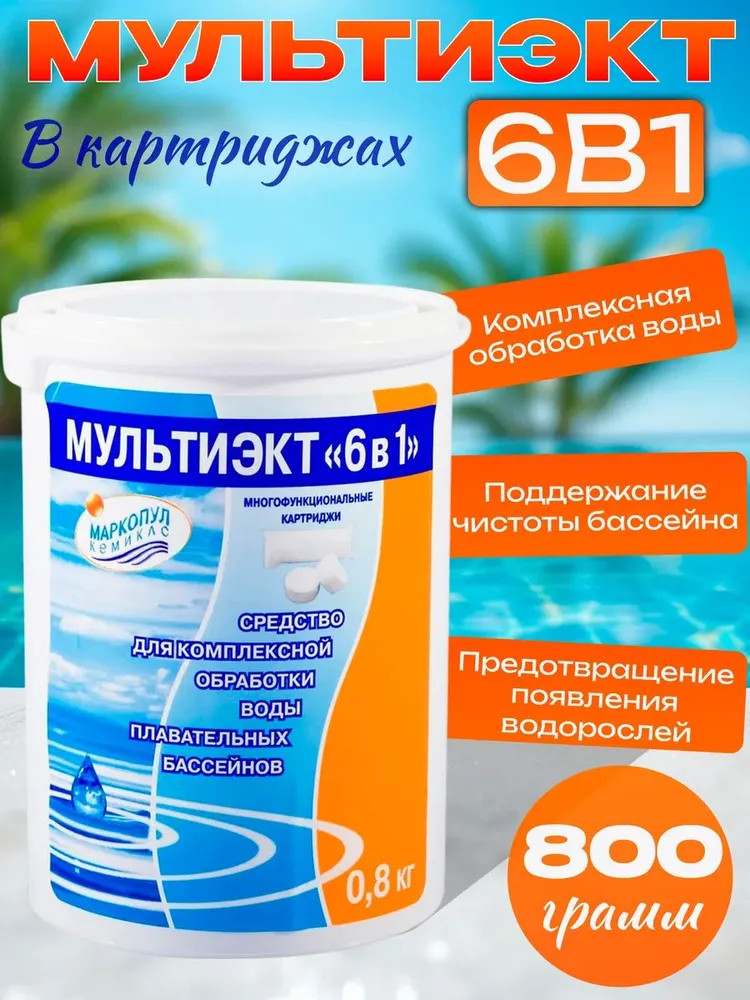 Маркопул Кемиклс Средство комплексное для обеззараживания и очистки воды «Мультиэкт 6в1»В данный момент этот товар отсутствует в продаже. Возможно, у нас найдется аналогичный или похожий товар здесь. Мультиэкт 6в1 — картриджи с комплексным средством для обработки воды. Состав картриджа позволяет обеспечить полный уход за водой бассейна и её дезинфекцию. |