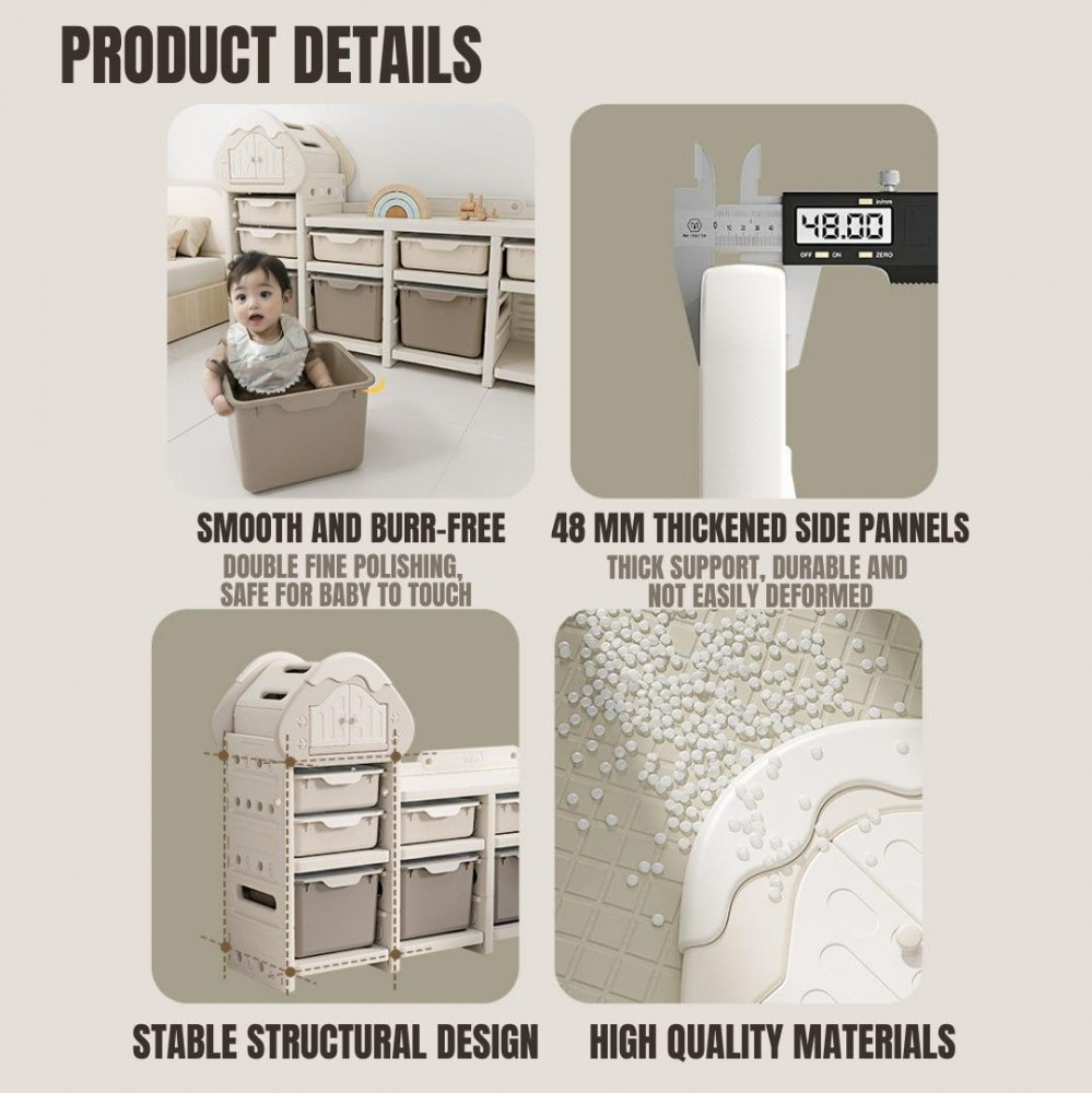 Стеллаж для хранения игрушек большой «Cloud House»В данный момент этот товар отсутствует в продаже. Возможно, у нас найдется аналогичный или похожий товар здесь. Детская многофункциональная система хранения с ящиками и закрытым отделением. Размер: 111×38×89 см. Приятные нейтральные оттенки, подходящие для любого интерьера. 6 вместительных ящиков разного размера для игрушек, книг и других принадлежностей. Верхнее закрытое отделение в виде домика для дополнительных мелочей. Прочная конструкция с округлыми углами для безопасности ребенка. Подходит для организации пространства в детской комнате. Идеально подходит для детей дошкольного и младшего школьного возраста, обеспечивая удобное и аккуратное хранение. |