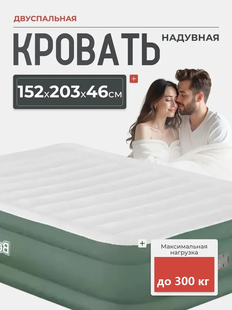 В данный момент этот товар отсутствует в продаже. Возможно, у нас найдется аналогичный или похожий товар здесь. Двухместная надувная кровать изготовлена по технологии «Tough Lite». Внутренние перегородки кровати под весом тела не деформируются и постоянно остаются устойчивыми. Вес распространяется равномерно по всей площади надувной кровати даже при неравномерном размещении веса, обеспечивая ещё большую стабильность чем стандартные надувные кровати. Верх кровати покрыт специальным флокированным покрытием, которое напоминает велюр, не даст соскальзывать постельному белью и покрывалам, легко чистится без применения специальных моющих средств. Внешняя часть Tough Lite в 150 раз более устойчива к истиранию, на 80% более устойчива к растяжению, в 2.4 раза более устойчива к проколам и на 40% легче, чем ПВХ.