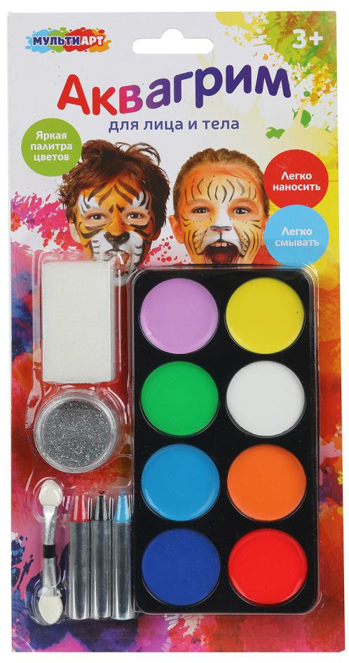 Multi Art Аквагрим для лица и телаВ данный момент этот товар отсутствует в продаже. Возможно, у нас найдется аналогичный или похожий товар здесь. Аквагрим — это настоящая находка для маленьких фантазёров, которая поможет превратиться им в любимых персонажей. Широкая цветовая гамма обеспечит создание красочного и запоминающегося образа на детских праздниках и просто дома, чтобы окунуться в мир удивительных фантазий. Удобные карандаши, а также аппликатор для палетки позволяют прорисовать даже самые сложные рисунки. Грим легко наносится на кожу и смывается водой и мылом. Цвета можно комбинировать и смешивать между собой. Для создания более интересных узоров на лице и теле в комплекте вы найдёте специальные трафареты. |