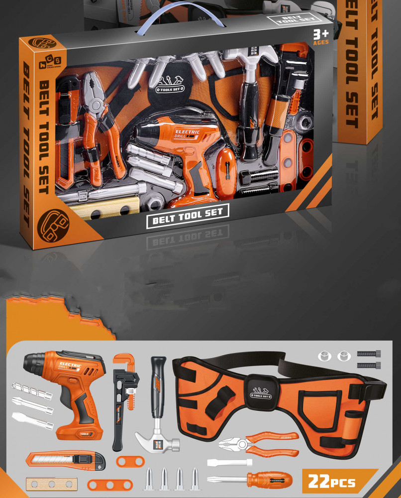 моторики, творческого мышления и интереса к ремонту и строительству. Предназначен для детей от 3 лет. С «Набором инструментов на ремне» ребенок сможет играть и учиться одновременно, примеряя на себя роль настоящего мастера. Пояс монтажника добавляет удобства в игре. Он оснащен быстроразъемной надежной застежкой, что позволяет детям легко надевать и снимать пояс во время игры. Каждый элемент набора продуман для удобства использования детьми. Они легко учатся главному — как работать с инструментами, принимая на себя различные роли в процессе игры. Такие занятия способствуют развитию ответственности и самостоятельности.