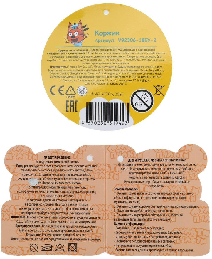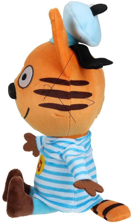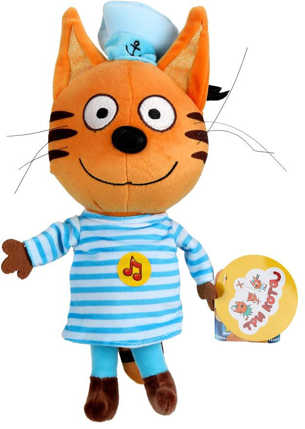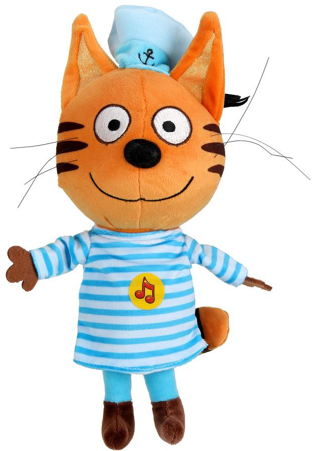 Очаровательный котёнок Коржик, одетый в матросский костюмчик, в точности как в популярном мультсериале, обязательно понравится вашему ребёнку. Игрушка очень мягкая на ощупь, её приятно обнимать. Этот забавный персонаж станет для малыша хорошим другом, с которым можно разыграть уже знакомые сюжеты или придумать новые. Благодаря небольшому размеру, игрушку удобно брать с собой на прогулку или в поездку. Наличие специального кармашка на липучке облегчает процесс замены батареек.