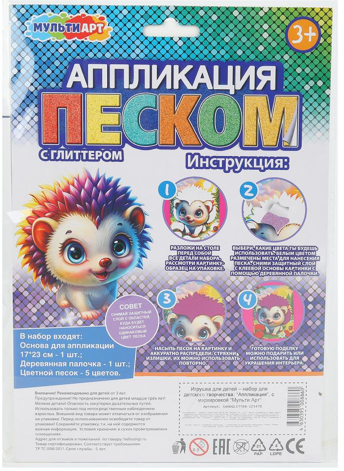 Multi Art Аппликация песком с глиттером «Ежик»-30% +43