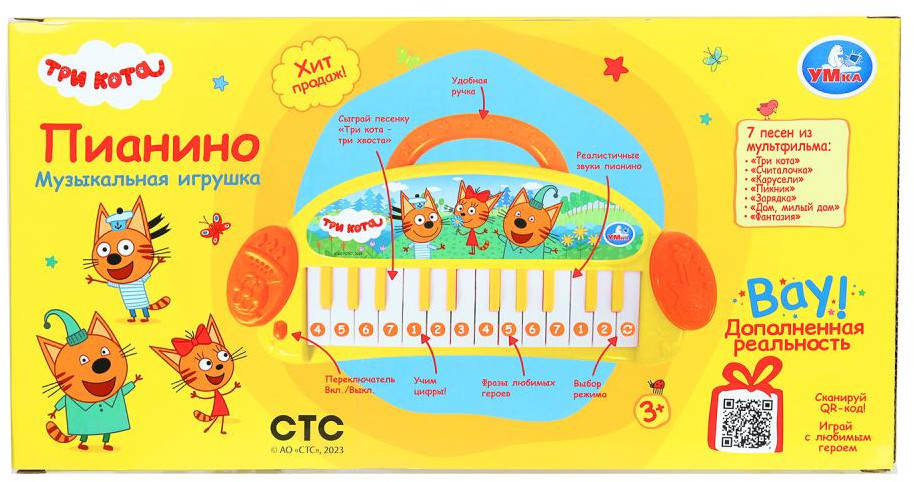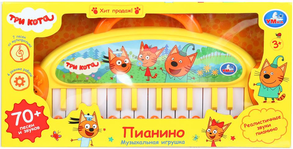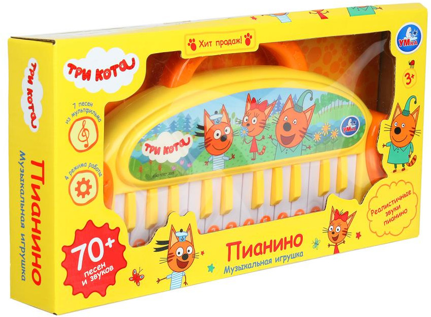 💳 Оплатить за товар можно при получении 🇰🇿 Есть бесплатная доставка по Казахстану от 1 дня 🎁 Копите бонусы с каждой покупки Серия: Три кота Музыкальное пианино «Три кота» ТМ «УМка» непременно понравится малышу и будет способствовать развитию его творческих способностей. Ребёнок с удовольствием будет нажимать на клавиши пианино и слушать песенки из любимого мультфильма и весёлые звуки. Кроме того, малыш сможет придумать и наиграть по клавишам собственную мелодию — для этого нужно переключить инструмент в режим пианино (последняя клавиша). |