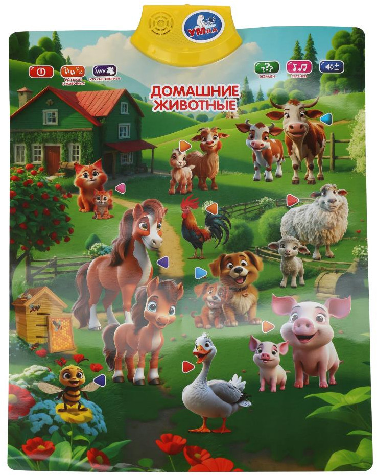 Говорящий плакат «Домашние животные» ТМ «УМка» — это уникальный и многофункциональный помощник для малыша. Полезная «база» для обучения ребёнка в виде говорящего плаката. Преподнесённую в визуальном и звуковом форматах информацию ребёнку будет проще усвоить и запомнить. Малыш с удовольствием будет нажимать на разнообразные кнопки и в лёгкой игровой форме знакомиться с обитателями фермы.