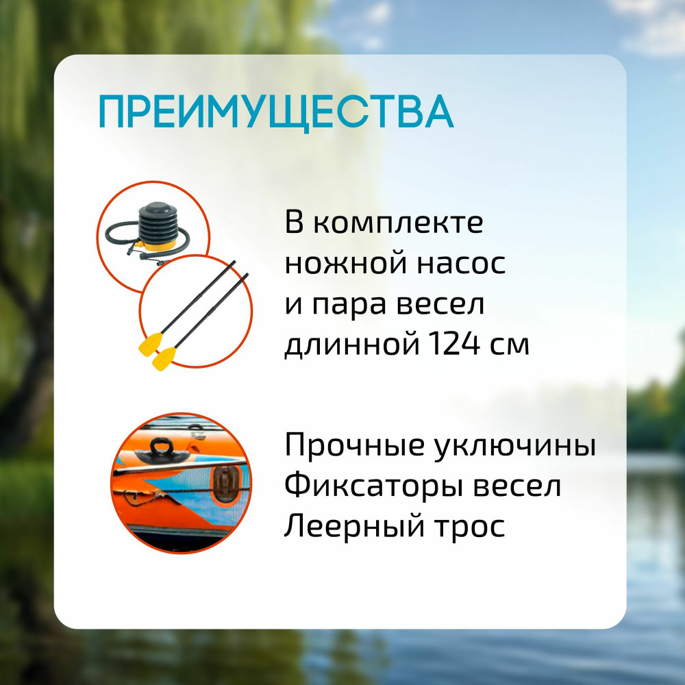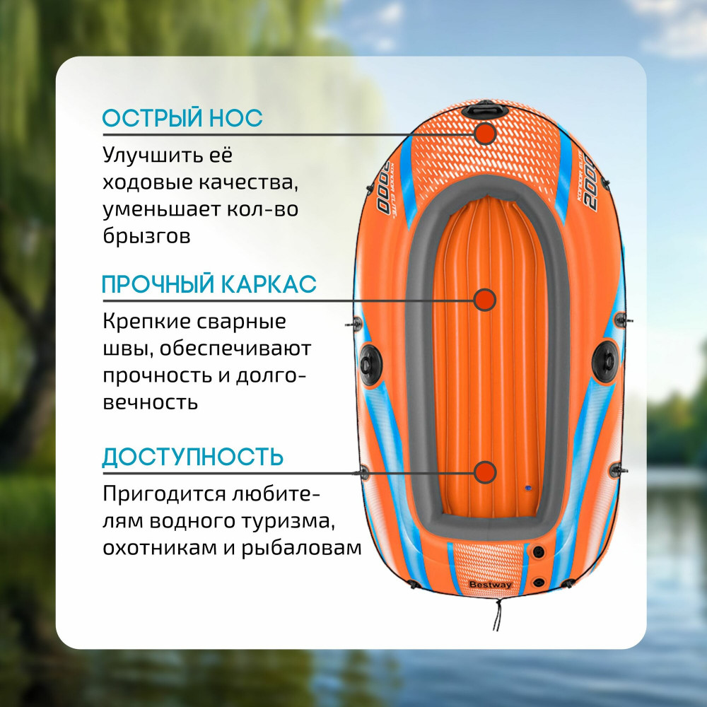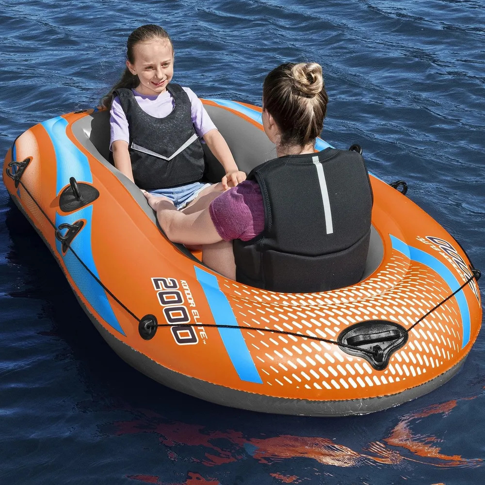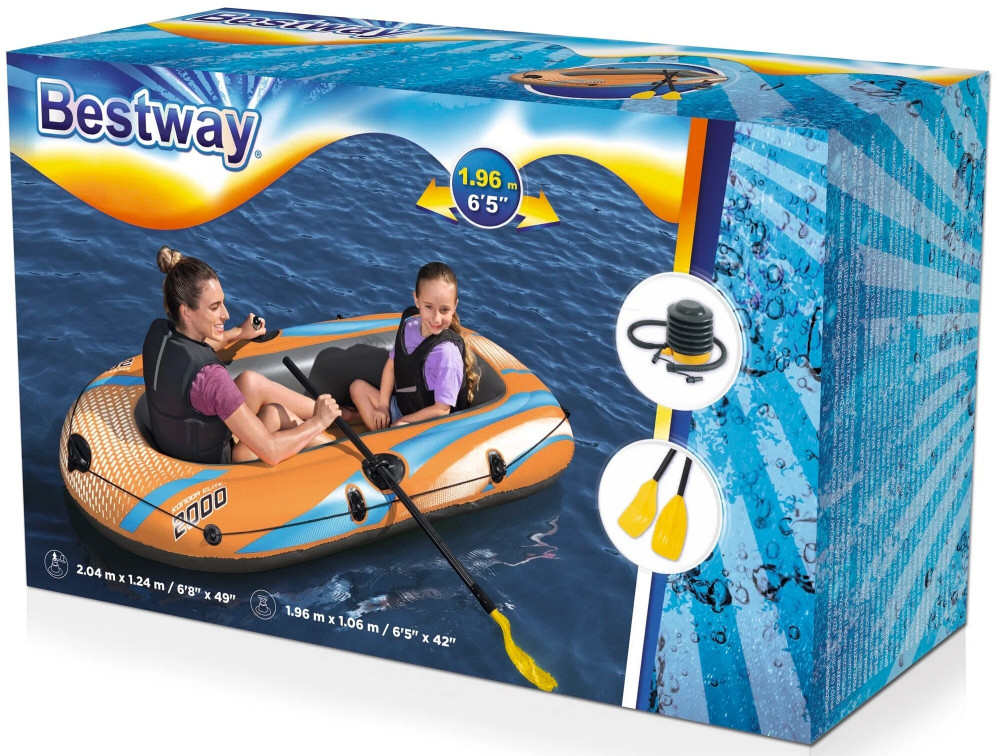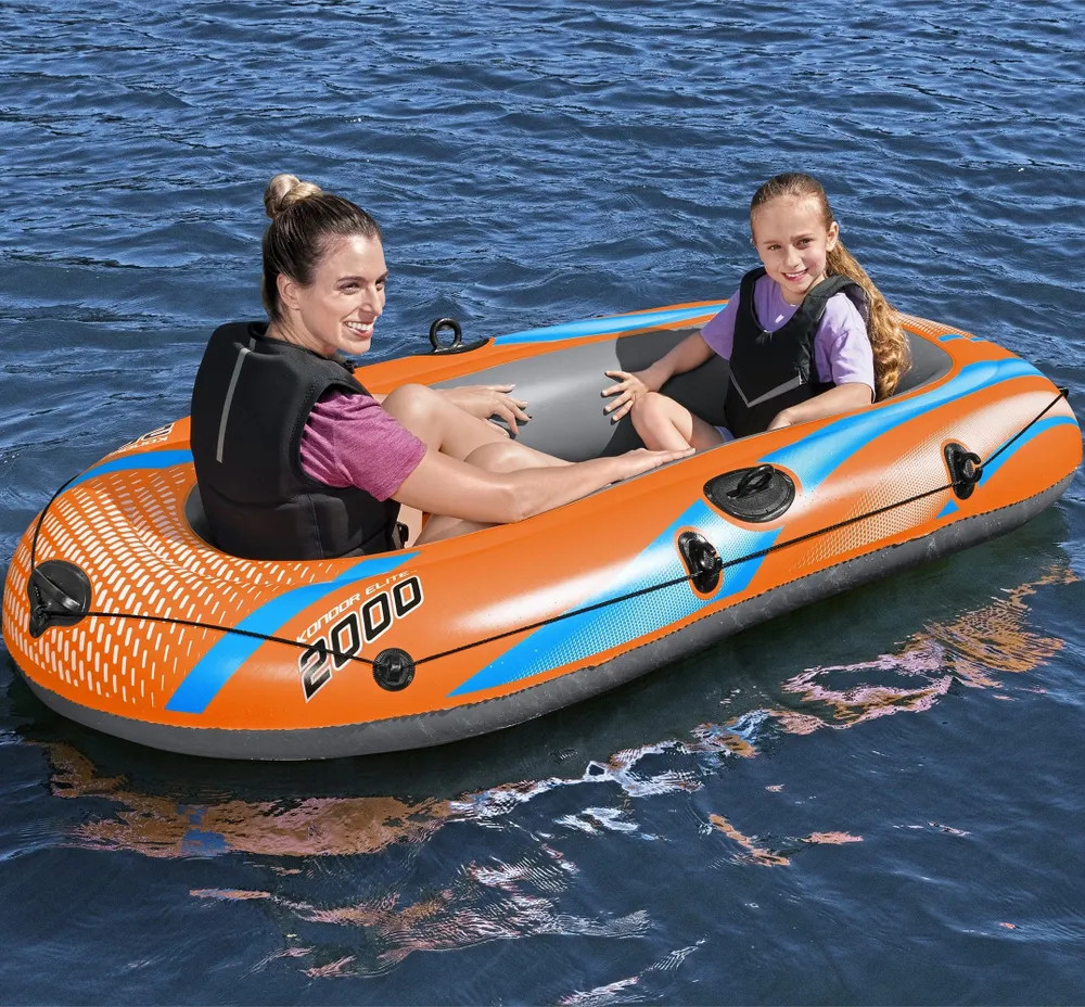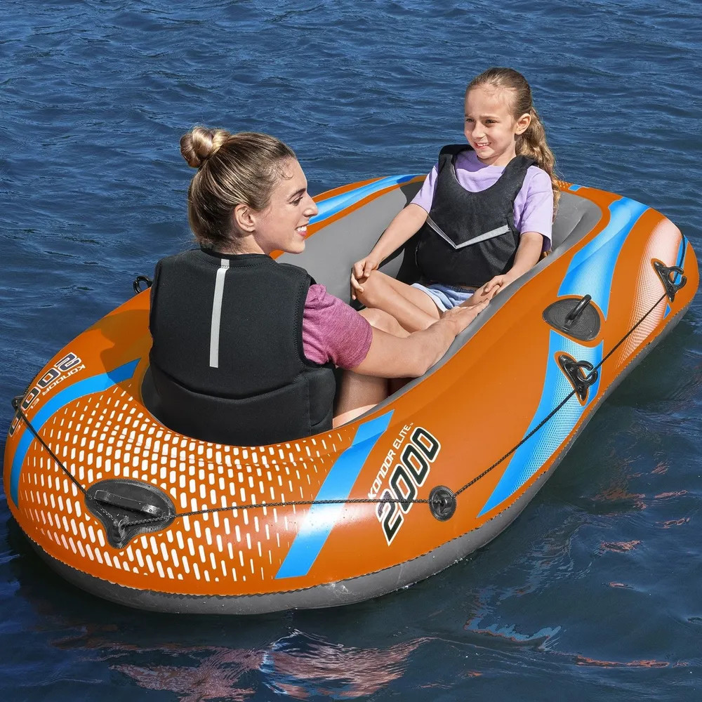 Bestway Kondor Elite 2000 — это надувная лодка, рассчитанная на одного взрослого и одного ребенка общим весом до 120 кг. Благодаря надувному полу вы сможете наслаждаться максимальным комфортом во время прогулки. Kondor Elite 2000 также оснащена двумя воздушными камерами, что еще раз обеспечивает дополнительную безопасность. Ручка, прикрепленная к передней части надувной лодки, позволяет легко её транспортировать. Кроме того, надувная лодка оснащена прочными уключинами, которые удерживают весла (не входят в комплект) на месте. Опорный трос по периметру со встроенными канатными вставками позволяет швартоваться или соединяться с другими лодками.