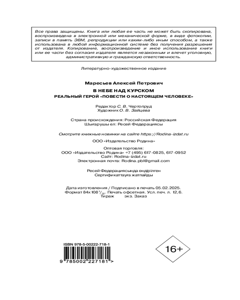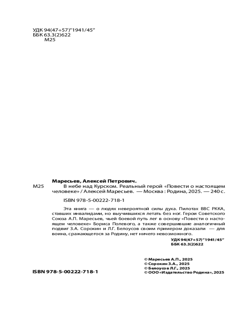 💳 Оплатить за товар можно при получении 🇰🇿 Есть бесплатная доставка по Казахстану от 1 дня 🎁 Копите бонусы с каждой покупки Серия: Сильные духом Эта книга — о людях невероятной силы духа. Пилотах ВВС РККА, ставших инвалидами, но выучившихся летать без ног. Герои Советского Союза А.П. Маресьев, чьей боевой путь лег в основу «Повести о настоящем человеке» Бориса Полевого, а также совершившие аналогичный подвиг З.А. Сорокин и Л.Г. Белоусов своим примером доказали — для воина, сражающегося за Родину, нет ничего невозможного. |