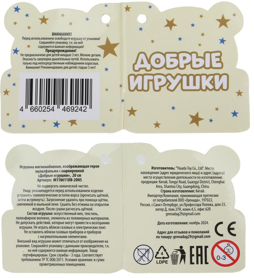 Добрые игрушки Мягкая игрушка «Чёрный дракон»В данный момент этот товар отсутствует в продаже. Возможно, у нас найдется аналогичный или похожий товар здесь. Мягкая игрушка «Чёрный дракон» ТМ «Добрые игрушки» — отличный подарок для маленьких любителей драконов. Очаровательный чёрный дракончик выглядит в точности как персонаж популярного детского мультика. С этой очень мягкой на ощупь игрушкой дети могут воссоздать уже знакомые по мультфильму сюжеты или придумать новые. Милая игрушка станет ребёнку добрым другом, которого можно взять с собой на прогулку или в поездку. |