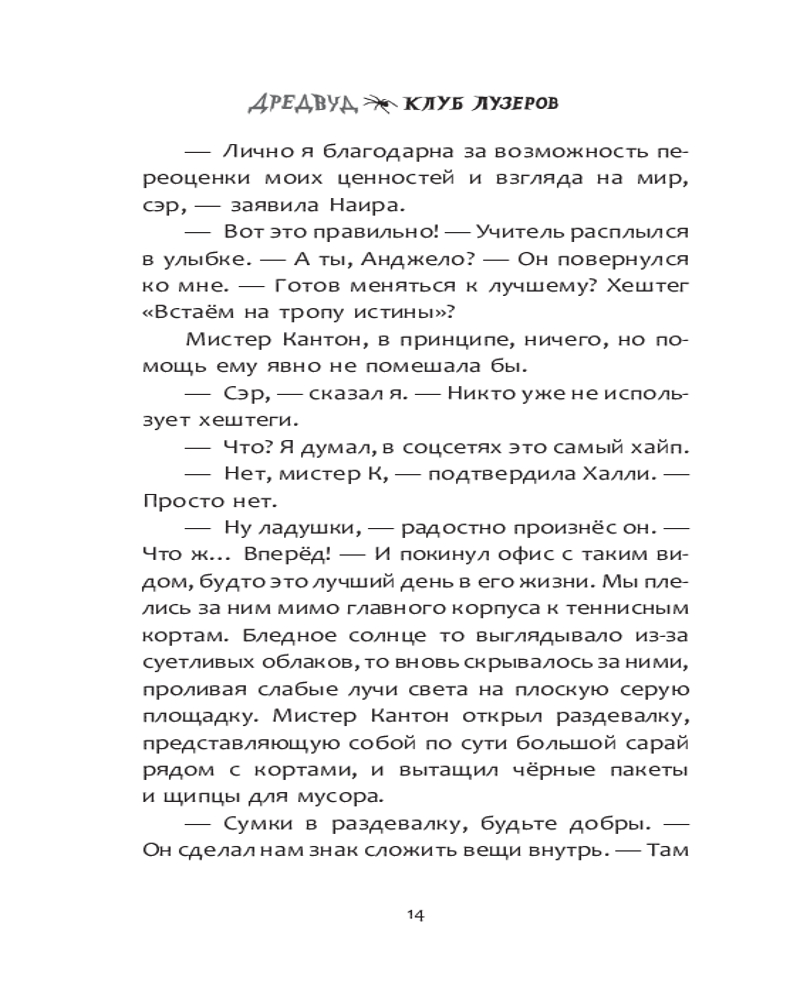 💳 Оплатить за товар можно при получении 🇰🇿 Есть бесплатная доставка по Казахстану 🎁 Копите бонусы с каждой покупки Серия: Любимые кошмары и ужастики Когда Анджело и трое его одноклассников — Халли, Гус и Наира — вынуждены были прийти в школу на отработку в субботу, им казалось, что это худшее наказание в их жизни. Но всё самое худшее было впереди! С того момента, как нечто утащило их учителя под землю, им придётся не раз принимать сложные решения, но самое главное — работать командой. Им предстоит ответить на очень сложные вопросы: почему именно они стали мишенью? кто жаждет мести? почему они всё время слышат детскую песенку «Малютка паучок»? Им лучше поторопиться! |