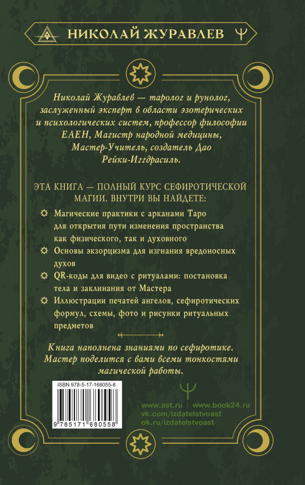 💳 Оплатить за товар можно при получении 🇰🇿 Есть бесплатная доставка по Казахстану от 1 дня 🎁 Копите бонусы с каждой покупки Серия: Алхимия духа. Лучшее Овладейте древним магическим искусством Сефирота! Мастер Николай Журавлев, опытный маг и Учитель, создатель собственного магического пути и школы последователей, подробно и четко расскажет о магических практиках. Они доказали свою силу и мощь, пройдя сквозь тысячелетия. Ритуалы, заклинания, печати ангелов, сила арканов Таро — все это будет подвластно вам. В книге есть QR-коды для видео, где Мастер в деталях показывает все тонкости проведения ритуалов, рисунки печатей, правильные начертания формул заклинаний, тексты заклинаний для точного воспроизведения (адаптация для русского языка). Разбудите в себе древнюю магическую силу и меняйте свой мир к лучшему! |