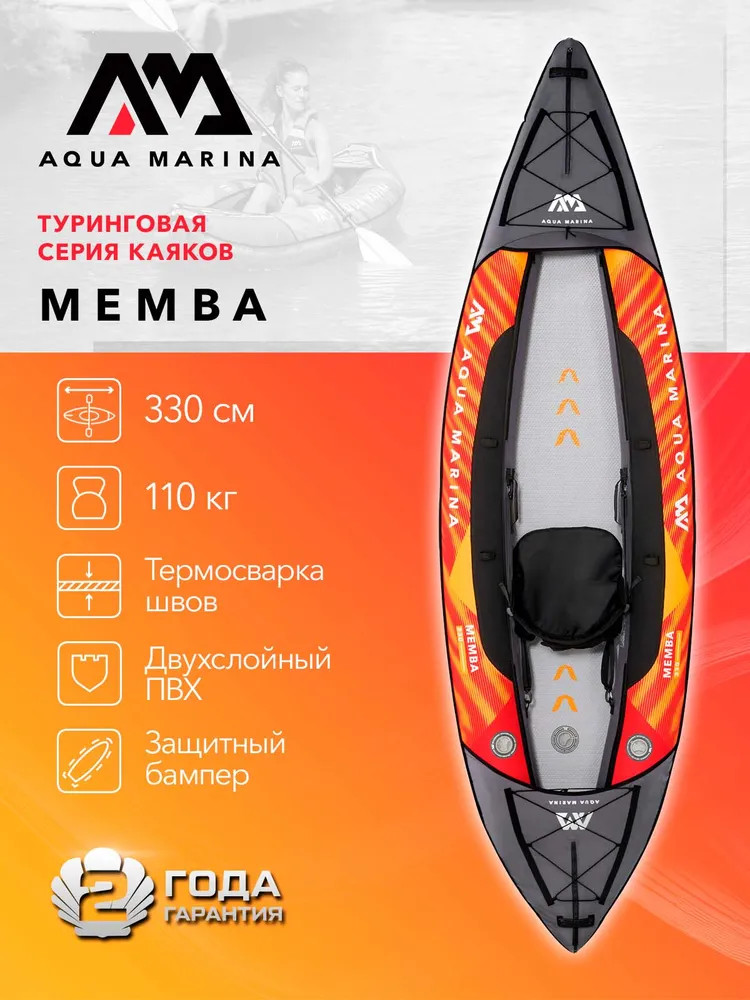 Туристические каяки серии Memba имеют конструкцию корпуса с низкой посадкой в сочетании с жестким надувным полом высокого давления, что обеспечивает лучшее скольжение по воде, стабильную курсовую устойчивость и легкость гребли. Одноместная и двухместная модели каяков Memba весят всего 13,4 кг и 17,0 кг соответственно. При этом они могут быть аккуратно упакованы в обновлённый специально разработанный рюкзак для удобного хранения и транспортировки. Причём туда же поместятся все аксессуары, которые могут понадобиться вам как для спуска на воду, так и по ходу путешествия.