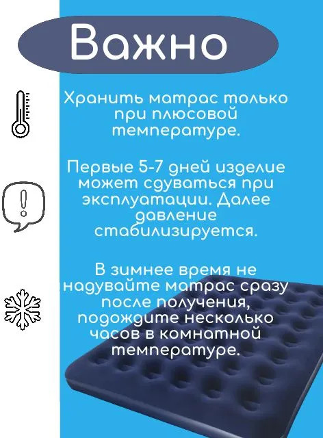 Полутороспальный надувной матрас серии Flocked Air Bed изготовлен по технологии Coil Beam Construction. Внутренняя конструкция матраса с усиленными перегородками, использование трубчатых перегородок придет матрасу повышенную выносливость и жесткость. Высококачественное флокированное покрытие верхней поверхности матраса, которое напоминает велюр, не даст соскальзывать постельному белью, легко чистится без применения специальных средств. Матрас оснащен универсальным клапаном для накачивания и сдувания — подойдет любой тип насоса: ручной, ножной, электрический. В комплект насос не входит, приобретается отдельно. В комплект входит специализированная самоклеющаяся заплатка для ремонта. Время надувания: 160 секунд.