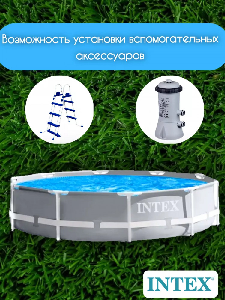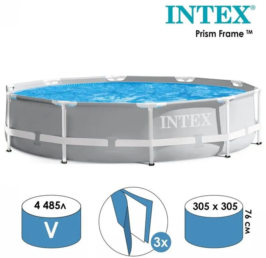 Сборно-разборный круглый каркасный бассейн Intex 26700 305×76см. серии Prism Frame . Чаша бассейна изготовлена по запатентованной технологии SUPER-TOUGH из высококачественного трехслойного ПВХ: два слоя плотного винила и один — полиэстер для особой прочности. Для дополнительной защиты и поддержания формы используется лента из полипропилена, «опоясывающая» весь бассейн. Стойки каркаса усиленные стальные с специальным антикоррозийным покрытием. Конструкция бассейна прочная, выдерживает высокие нагрузки, благодаря чему бассейном могут активно пользоваться одновременно несколько человек.
