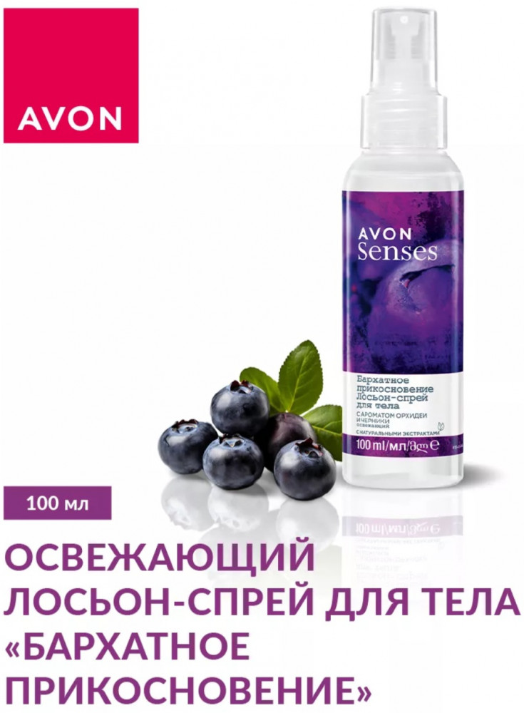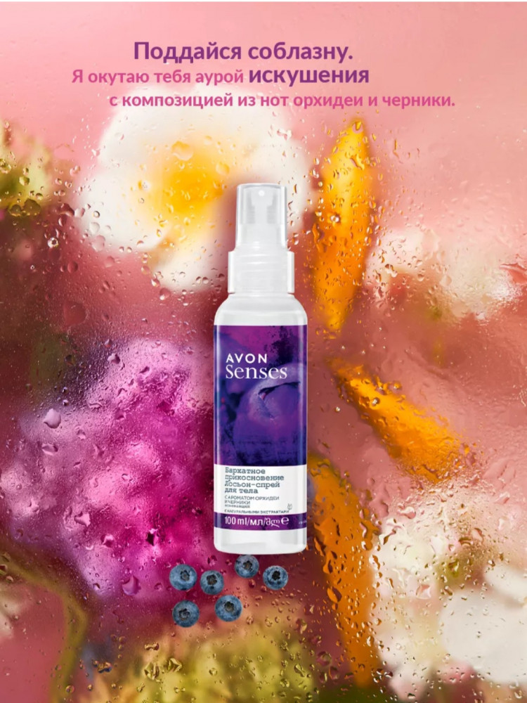 Avon Лосьон-спрей для тела парфюмированный «Бархатное прикосновение»В данный момент этот товар отсутствует в продаже. Возможно, у нас найдется аналогичный или похожий товар здесь. Серия: Senses Спрей AVON «Бархатное прикосновение» обладает изысканным цветочно-фруктовым ароматом, который подчеркивает женственность. Основные ноты — орхидея и черника. Легкая текстура мгновенно освежает кожу без ощущения липкости. Подходит для любого типа кожи — не сушит и не раздражает. Можно использовать после душа, на волосы, одежду или постельное бельё. Компактный флакон удобно брать с собой в сумочку или дорожную косметичку. Этот спрей станет идеальным дополнением к ежедневному уходу за кожей, окружая вас легким, нежным и утонченным ароматом. |