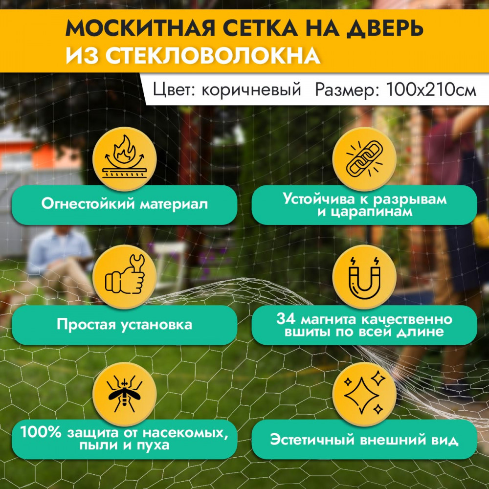 💳 Оплатить за товар можно при получении 🇰🇿 Есть бесплатная доставка по Казахстану от 1 дня 🎁 Копите бонусы с каждой покупки В комплект входят кнопки и двусторонний скотч для крепления к дверному проему. Противомоскитная сетка Rosenberg надежно защитит ваш дом от проникновения любых насекомых, не нарушая естественную циркуляцию воздуха. Легко и надежно крепится, не препятствует проходу людей и домашних животных. Благодаря размеру 100×210 см закроет дверь, ни оставив ни щелочки. |