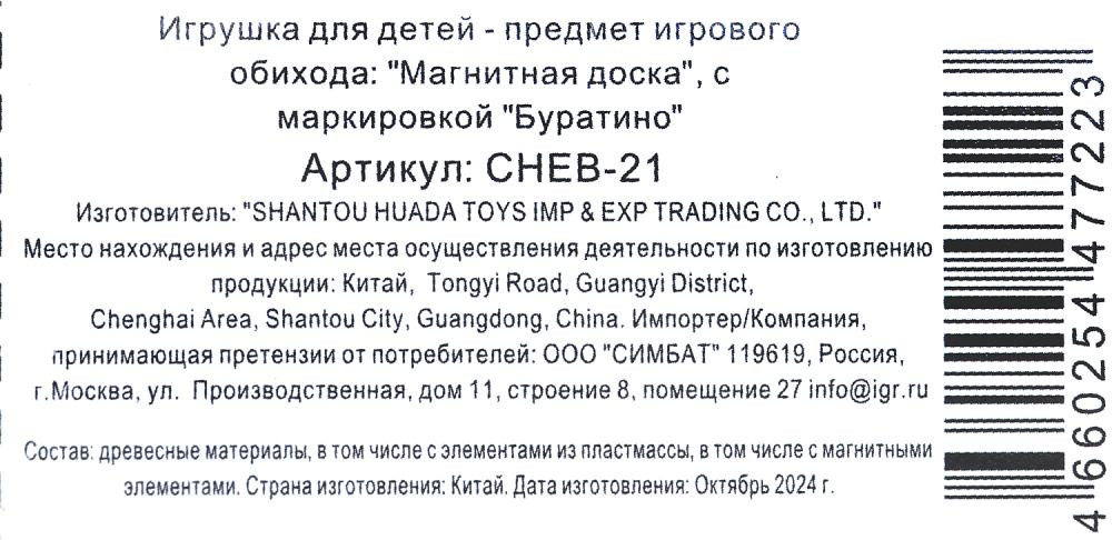 Буратино Доска магнитная «Чебурашка»-40% +52