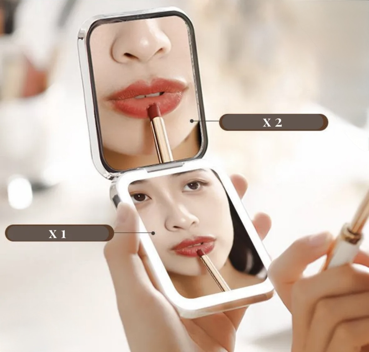Зеркало складное с LED подсветкойВ данный момент этот товар отсутствует в продаже. Возможно, у нас найдется аналогичный или похожий товар здесь. Компактное зеркальце имеет LED подсветку, заряжается от usb кабеля (идет в комплекте) с двумя зеркальными поверхностями: тонкий корпус и лаконичный дизайн. Модель обладает двумя зеркалами (с обычным и двукратным увеличением). Его удобно хранить: тонкая крышка надежно закрывается и позволяет обезопасить зеркальные поверхности. Стильный аксессуар выполнен в лаконичном серебряном цвете, с глянцевым покрытием. Компактное зеркало легко поместится даже в самой небольшой дамской сумочке. |
