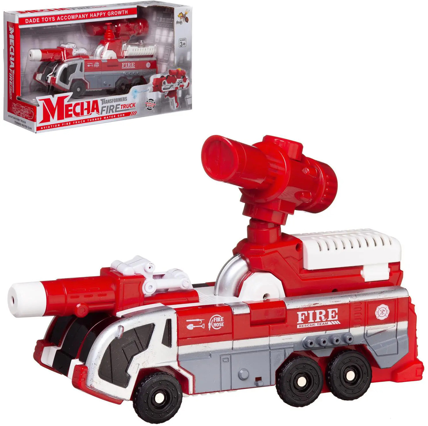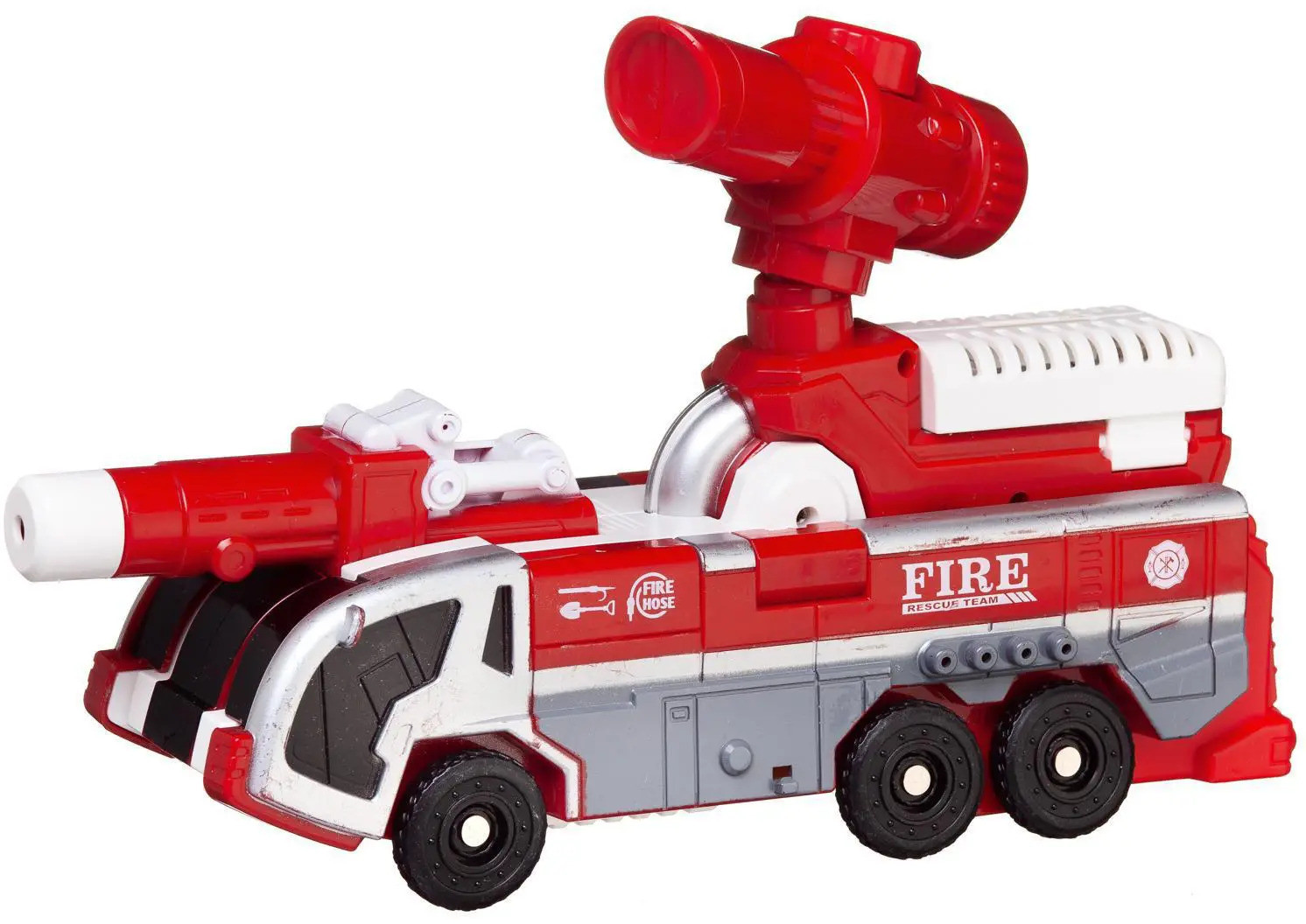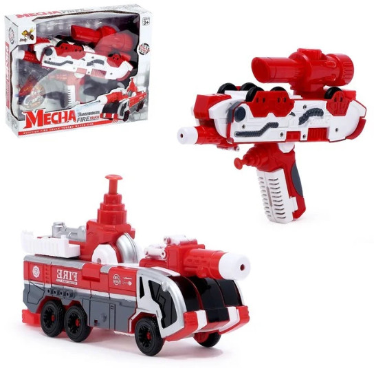 Игрушечная пожарная машинка выглядит как настоящая! Она может справиться с любым огнем. Просто открой крышку, залей воду в резервуар (вмещает 180 мл воды), нажимай на кнопку и вода будет брызгать из пожарного ствола. Но это еще не все! Пожарная машина способна трансформироваться в крутой ручной водный бластер и вы можете устроить настоящее водное сражение с друзьями теплым летним днем. Захватывающая игра вам обеспечена!