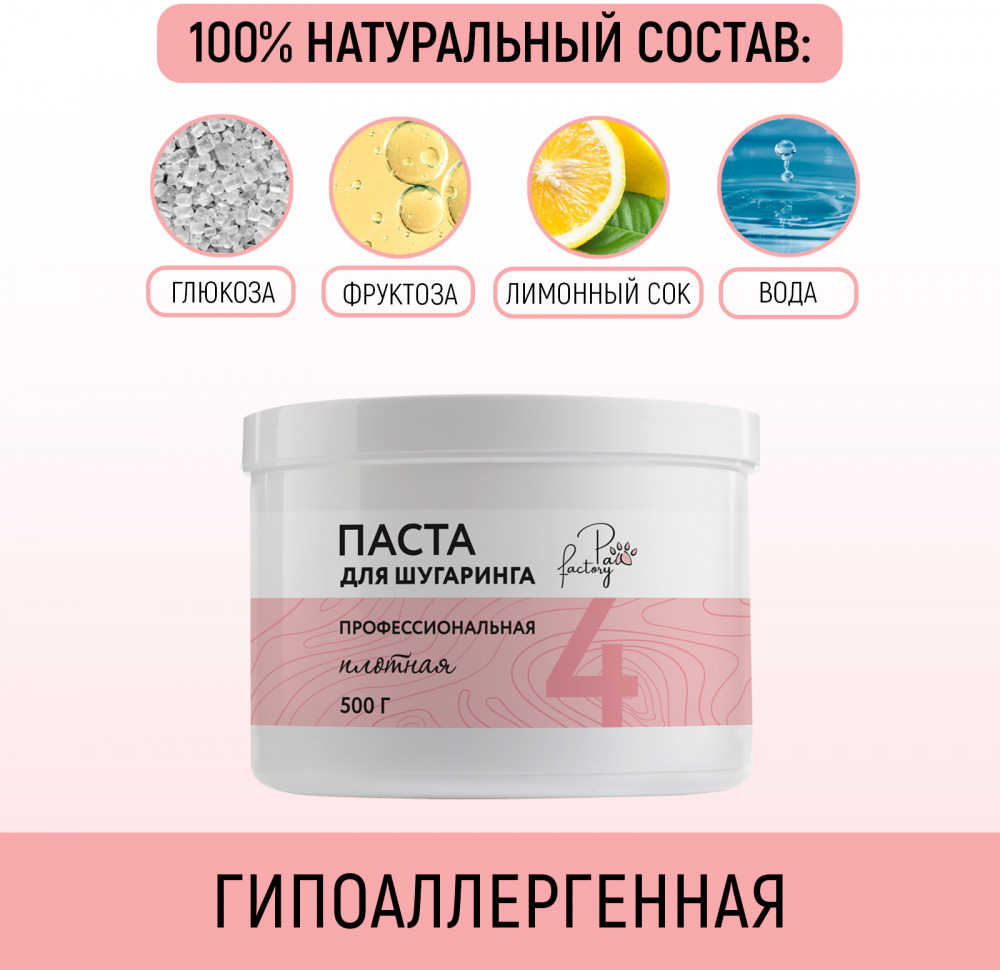 Сахарная паста для депиляции — это быстрый способ аккуратно и безопасно избавиться от нежелательных волос. В отличие от бритья или использования горячего воска, данный продукт обеспечивает бережный уход без повреждений и раздражений. Он отлично подходит для мануальной техники шугаринга и для удаления волос с использованием с бандажа, используется в профессиональной косметологии в салонах красоты, но также отлично подходит для домашнего применения в ванной комнате. В составе косметики только натуральные компоненты: глюкоза, фруктоза, сок лимона и очищенная вода, благодаря чему она является безопасной для использования на любых участках тела, включая ноги, руки и даже чувствительные или интимные зоны, такие как подмышки и область бикини. Благодаря мягкой и эластичной текстуре, материал легко наносится и также просто удаляется, не оставляя после себя следов или залипаний.