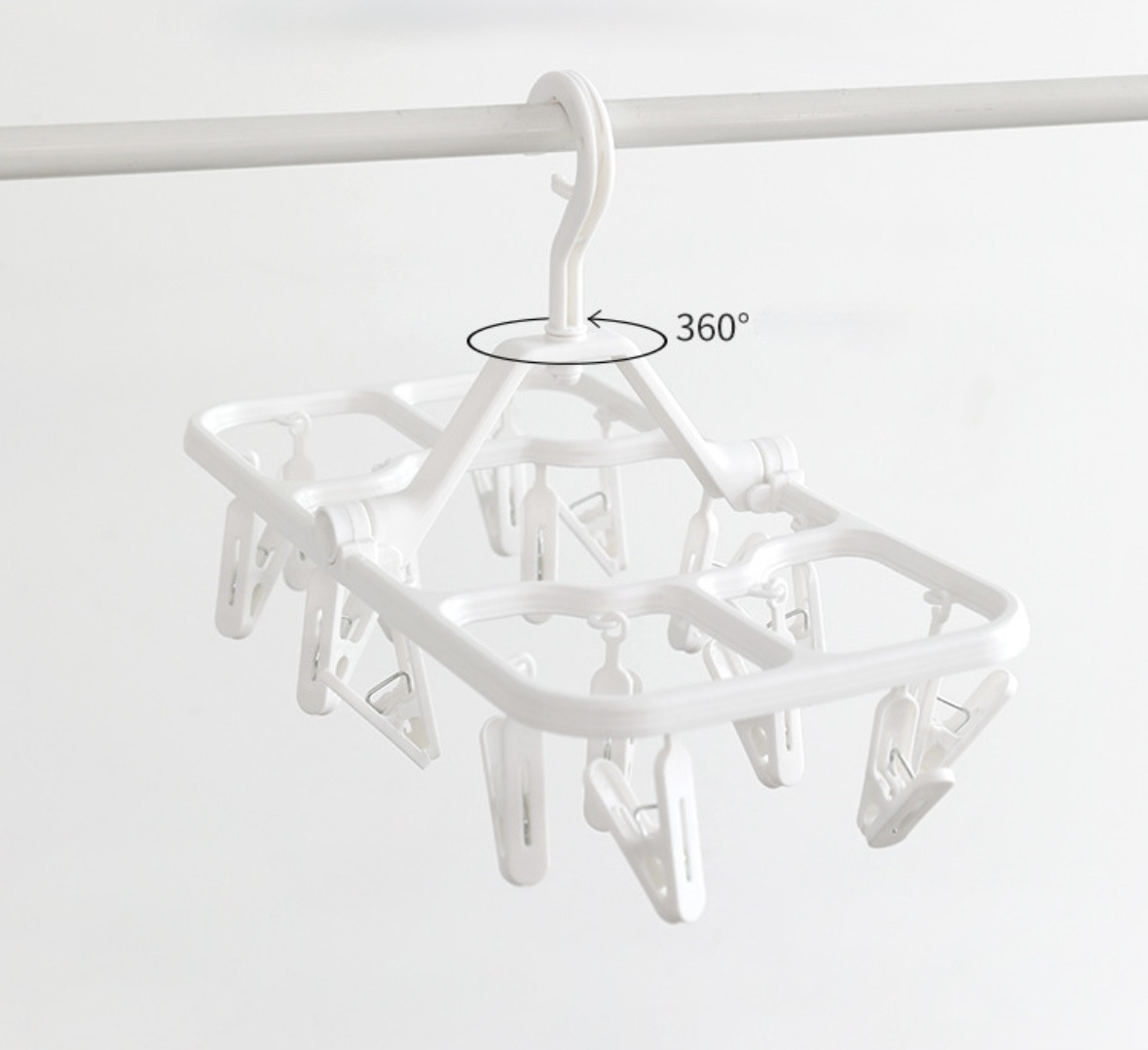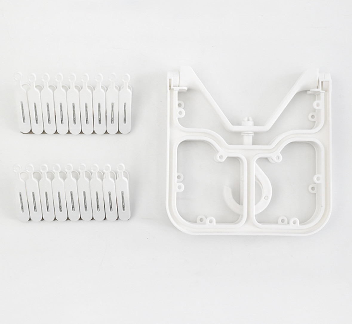 Вешалка с прищепкамиВ данный момент этот товар отсутствует в продаже. Возможно, у нас найдется аналогичный или похожий товар здесь. Компактная и удобная вешалка с 16 прищепками — идеальное решение для сушки носков, белья, мелких вещей и аксессуаров. Прочная конструкция из качественного пластика, вращающийся крючок и складывающаяся форма позволяют экономить место при хранении. |