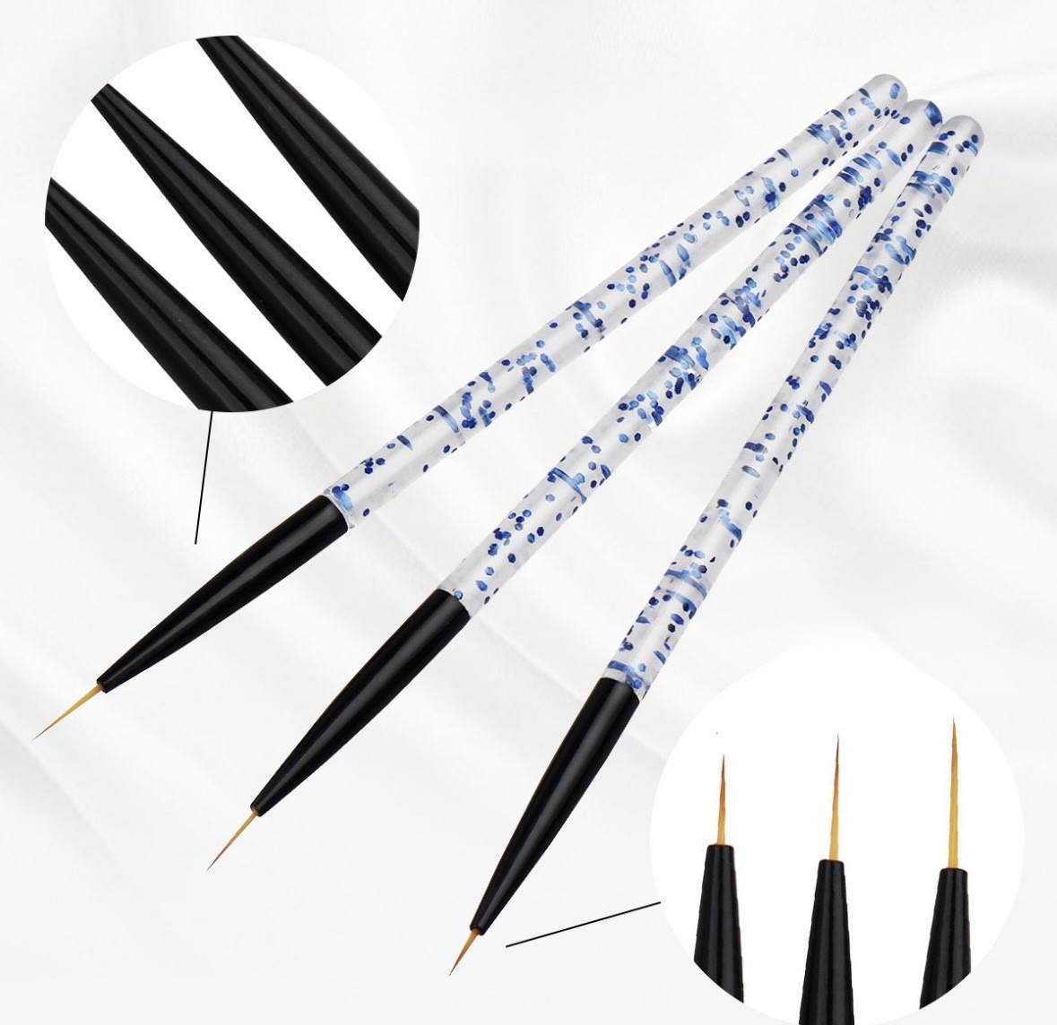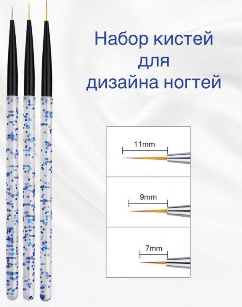 Набор кистей для дизайна ногтейВ данный момент этот товар отсутствует в продаже. Возможно, у нас найдется аналогичный или похожий товар здесь. Набор тонких кистей для нейл-арта предназначен для создания детализированных рисунков, линий и узоров на ногтях. Подходят как для профессионального, так и для домашнего использования. |