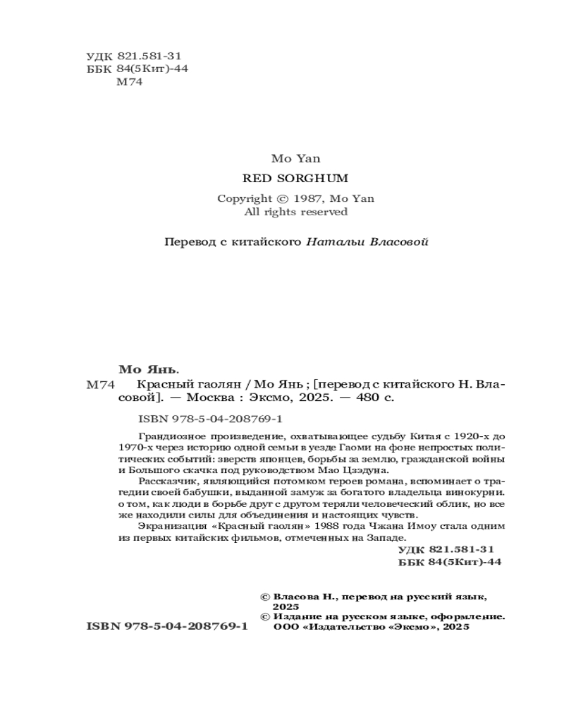 💳 Оплатить за товар можно при получении 🇰🇿 Есть бесплатная доставка по Казахстану от 1 дня 🎁 Копите бонусы с каждой покупки Серия: Loft. Лучшие произведения Мо Яня Самый известный роман Нобелевского лауреата Мо Яня в новом красочном оформлении! Экранизация Чжана Имоу стала одним из самых заметных китайских фильмов на Западе. Проникновенная семейная история, рассказанная потомком девушки, выданной замуж за богатого владельца винокурни. Волнительные исторические события, войны, бандитизм и революции, на фоне которых живут свою жизнь обыкновенные люди. |