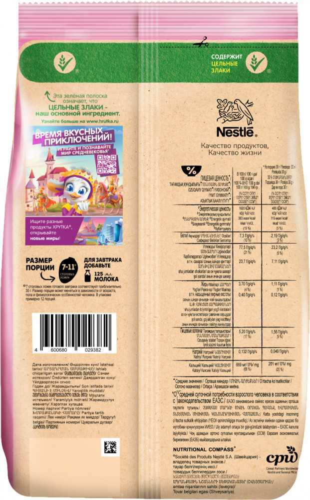 Кукурузные хлопья Хрутка производятся по высоким стандартам качества Nestlé из кукурузы, выращенной в России, без красителей и консервантов! |
