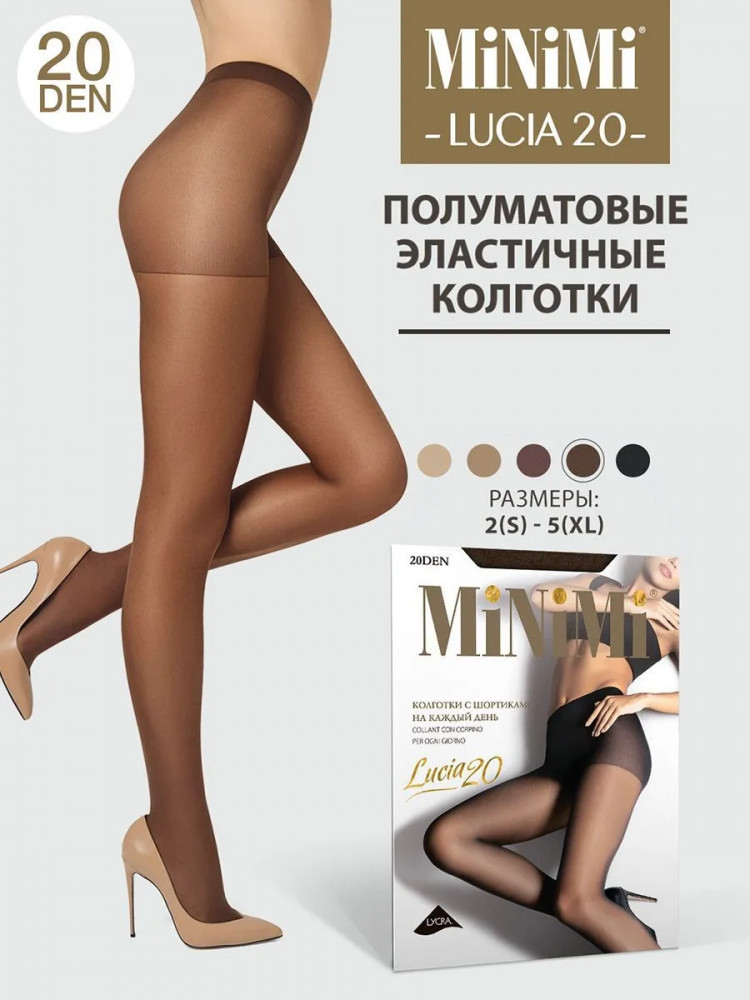 Женские тонкие полуматовые эластичные колготки 20 den с шортиками. Благодаря усиленным шортикам и комфортным швам колготки превосходно сидят и отлично облегают. Невидимый прозрачный мысок позволяет носить колготки с открытой обувью. Смотрятся естественно и практически незаметны на ноге. Полуматовые колготки Lucia 20 — классические повседневные колготки с невидимым мыском, которые отлично дополнят любой образ, независимо от предпочитаемого стиля одежды.